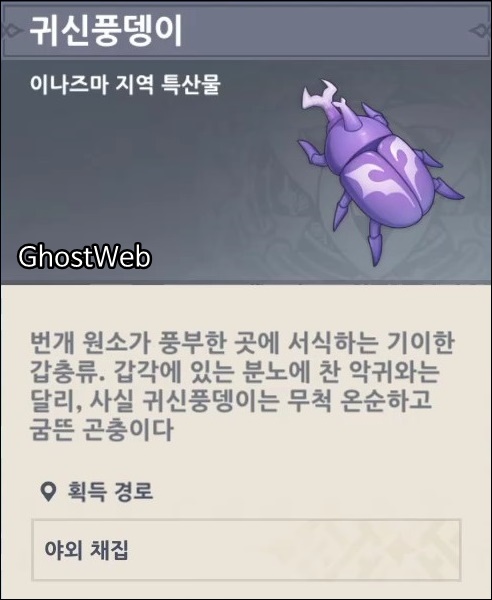 이나즈마 지역 특산물인 귀신 풍뎅이를 얻을 수 있는 위치를 정리해보도록 할게요.