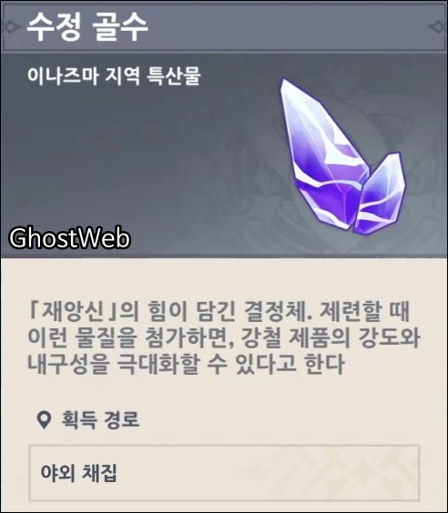 이번에는 이나즈마 지역 특산물인 <수정 골수>의 위치를 정리해보도록 할게요.