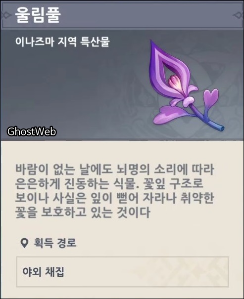 이번에는 이나즈마 지역 특산물인 <울림풀> 위치를 정리해보도록 할게요.