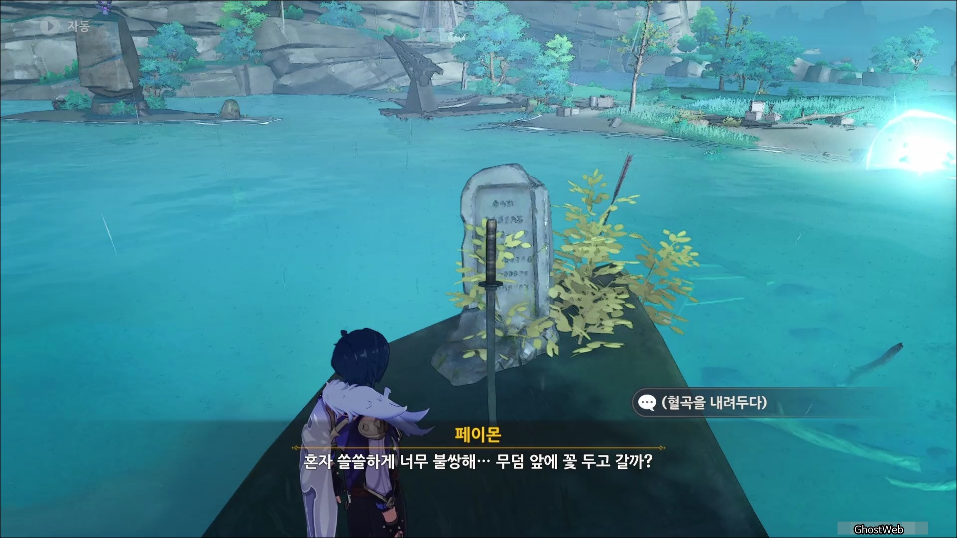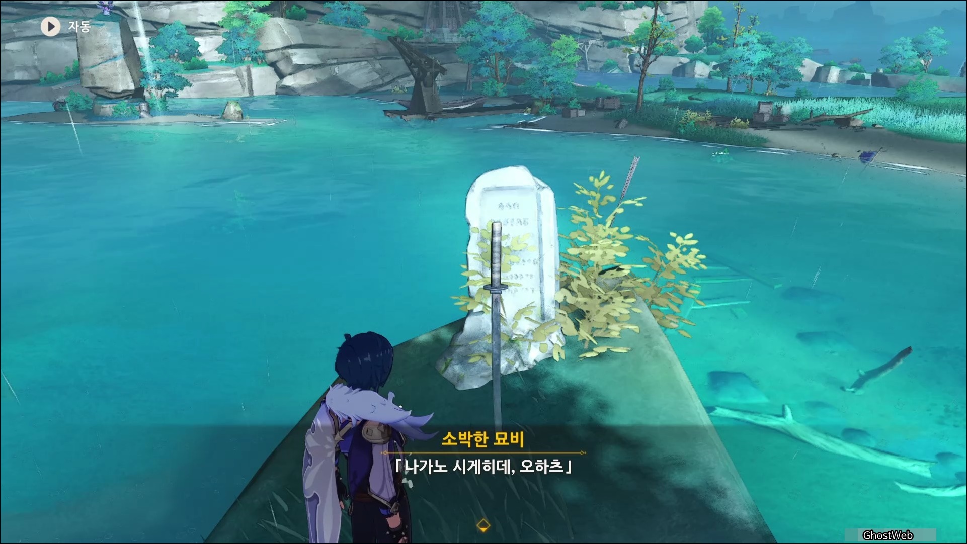 이나즈마 야시오리섬을 탐험하다 보면 전사자의 비석인 <소박한 묘비>를 발견할 수 있는데요.