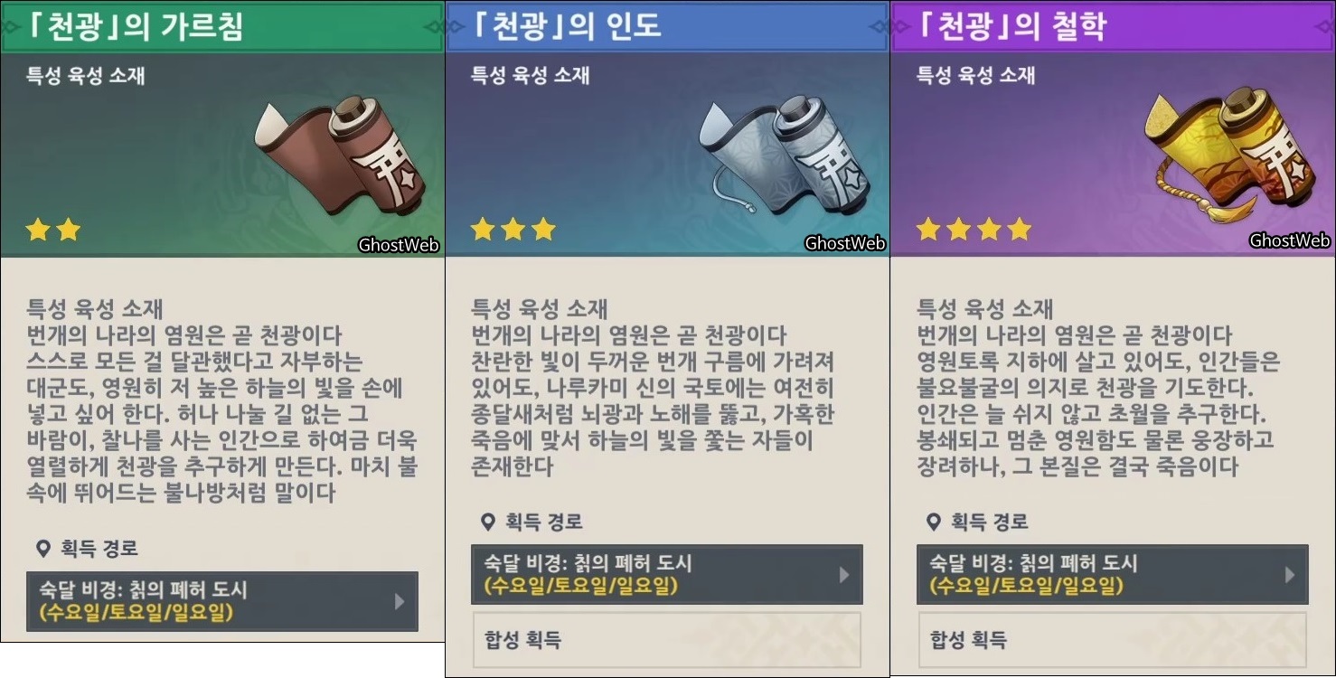 - 획득 가능 요일 : 화요일, 금요일, 일요일