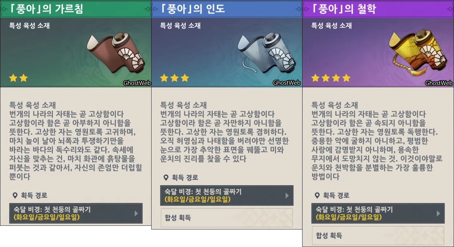 | [원신] 잊혀진 협곡 비경 정리 (몬드 지역 캐릭터 특성 소재, 시문, 자유, 투쟁) (0) | 2021.09.22 |