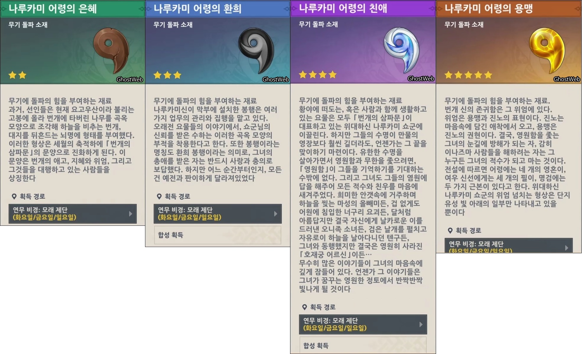 - 획득 가능 요일 : 화요일, 금요일, 일요일