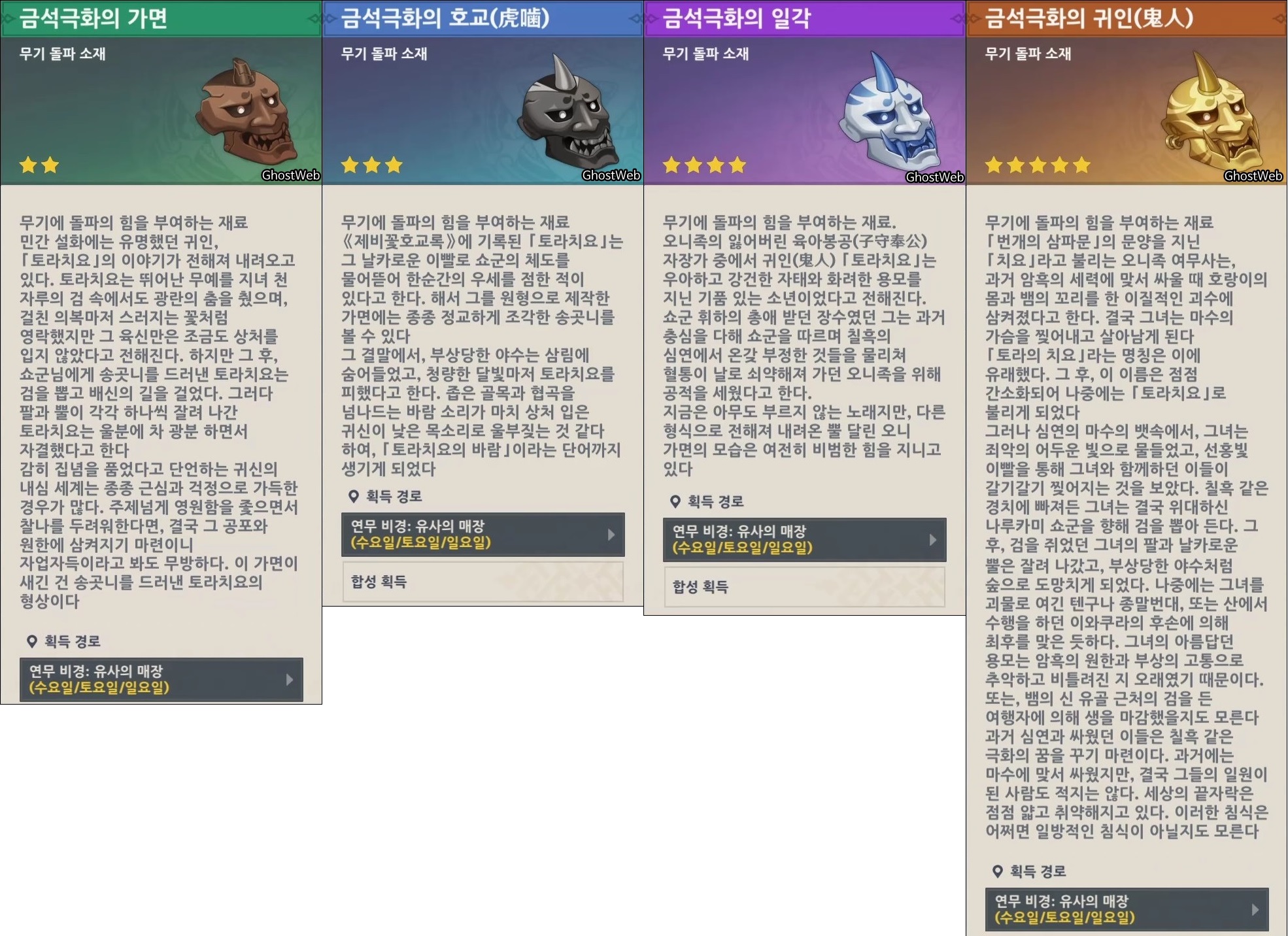 ○ 금석극화의 가면/호교/일각/귀인