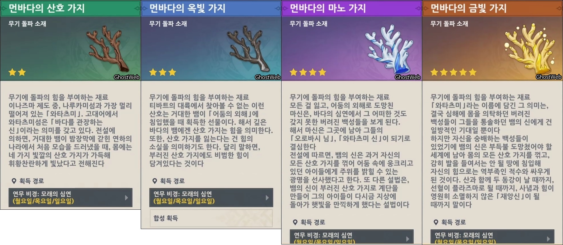 ○ 먼바다의 산호 가지/옥빛 가지/마노 가지/금빛 가지