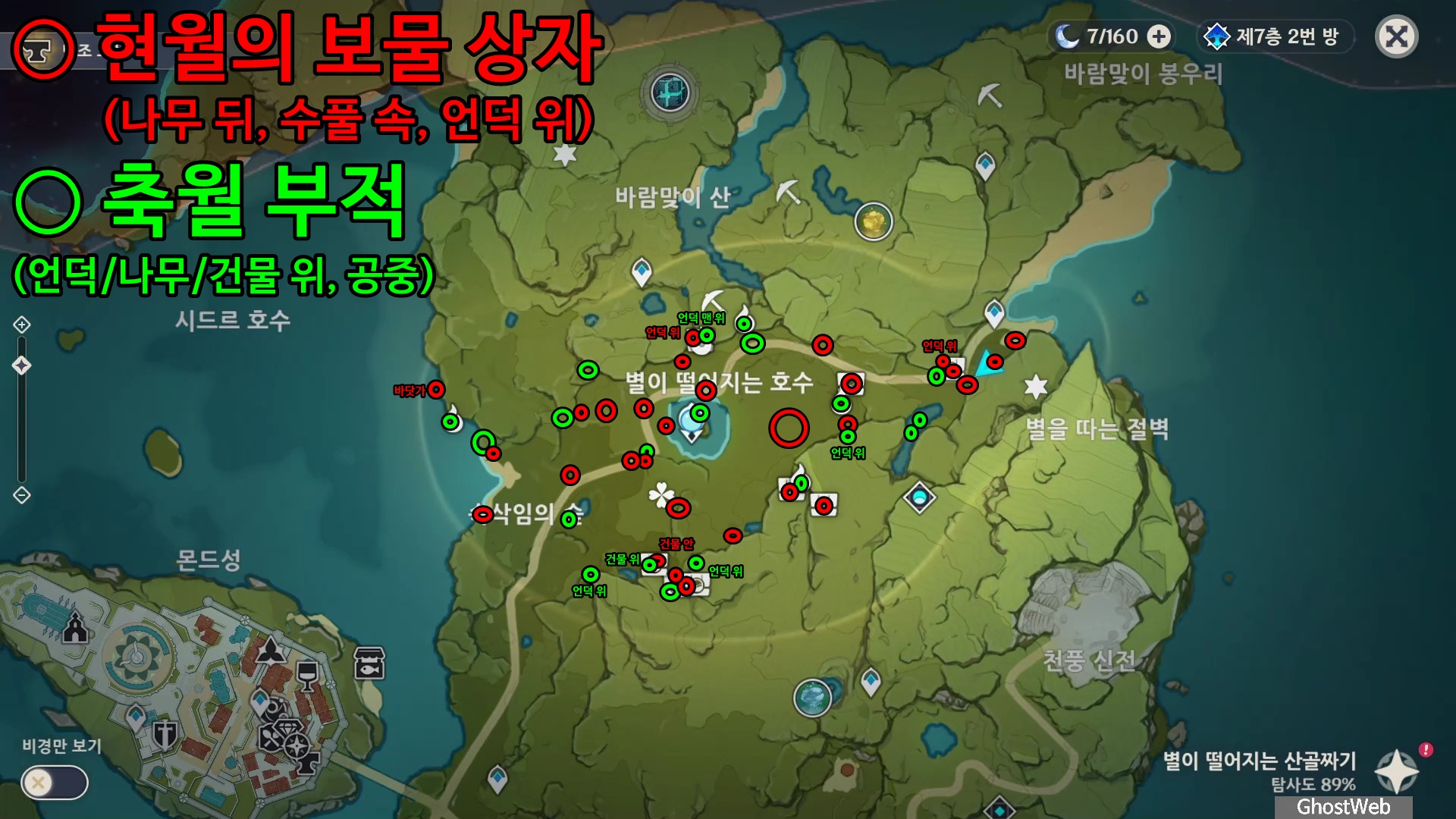 [원신] 반암의 길 - 축월 부적, 현월의 보물상자 위치 정리 (달빛 속 광경, 달빛을 찾아서, 축월절