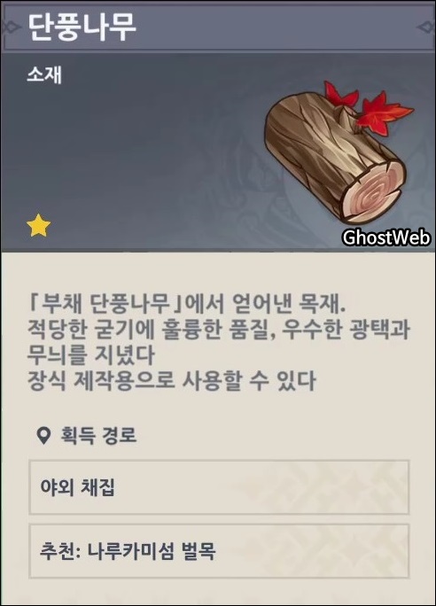 이번에는 단풍 나무 원목을 얻을 수 있는 부채 단풍나무의 위치를 정리해보도록 할게요.
