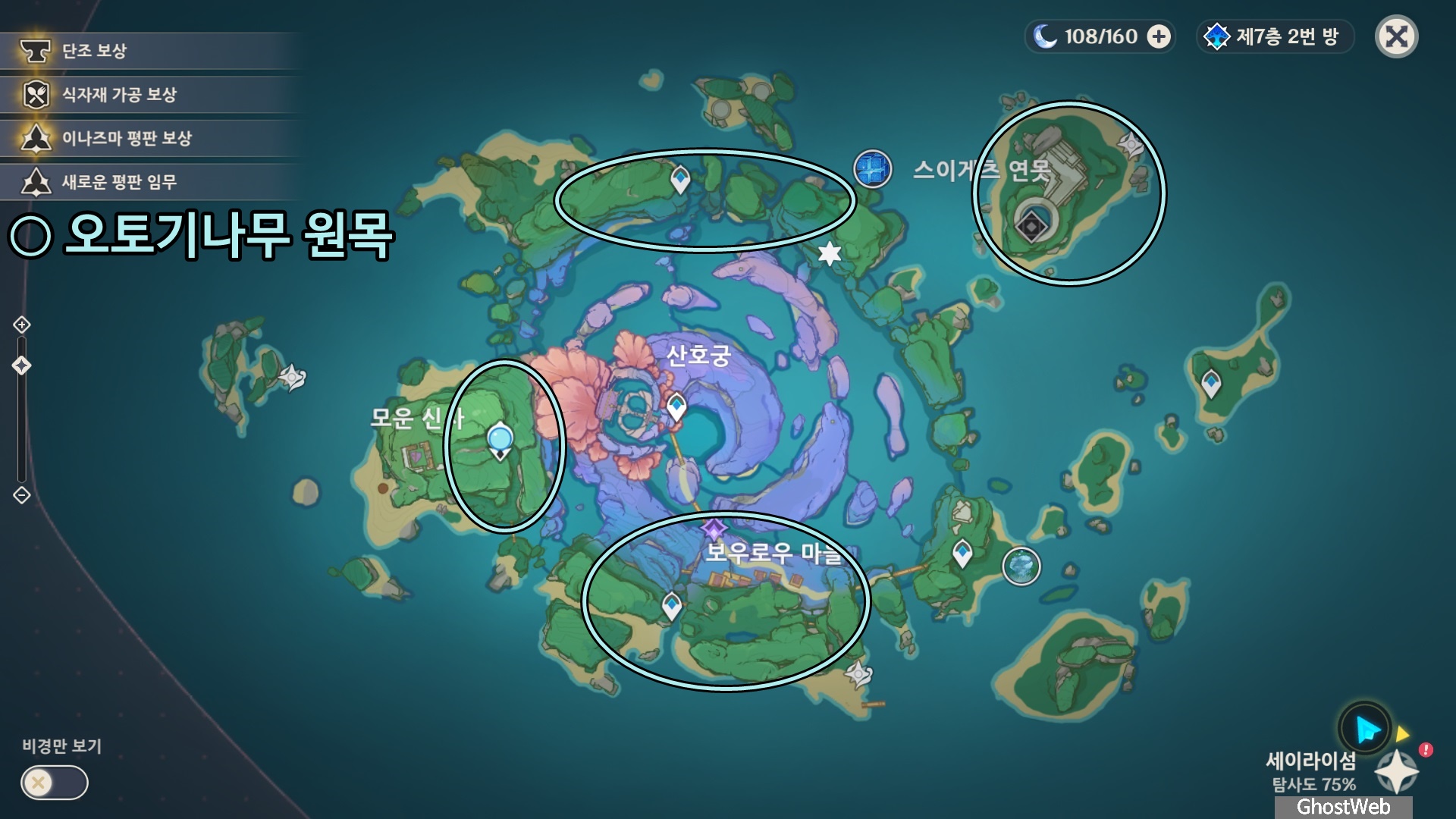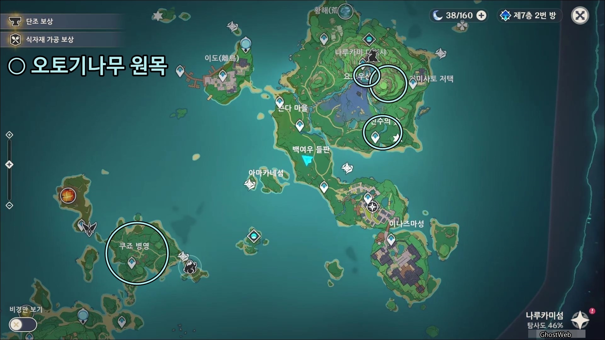 이번에는 오토기나무 원목을 얻을 수 있는 오토기나무의 위치를 정리해보도록 할게요.