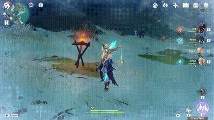 횃불, 화로에 불이 안 붙어 있는 경우 불 원소 캐릭터의 불 원소 공격(예 : 엠버 강공격)으로 불을 붙여 추위를 녹일 수 있어요.
