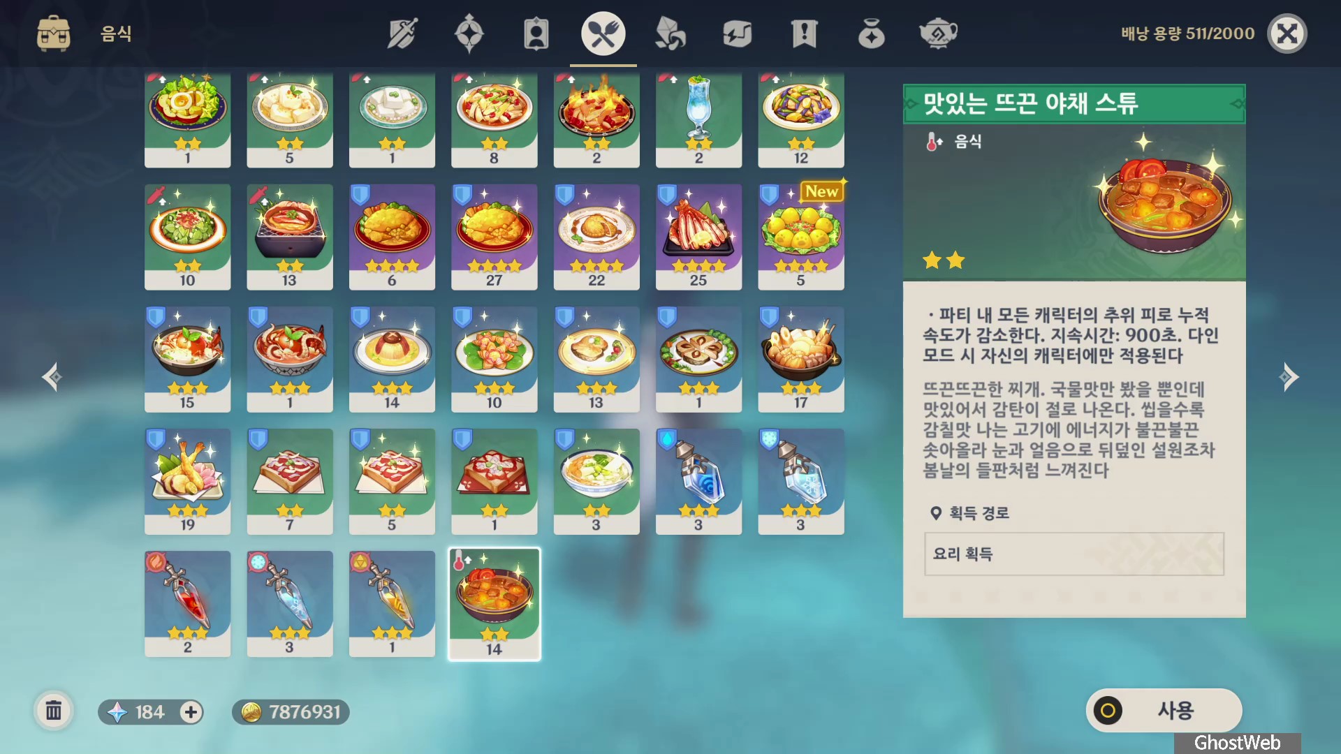 [원신] 아 신선한 고기! (뜨끈 야채 스튜, 냉동 생고기, 설산 멧돼지 왕 고기)