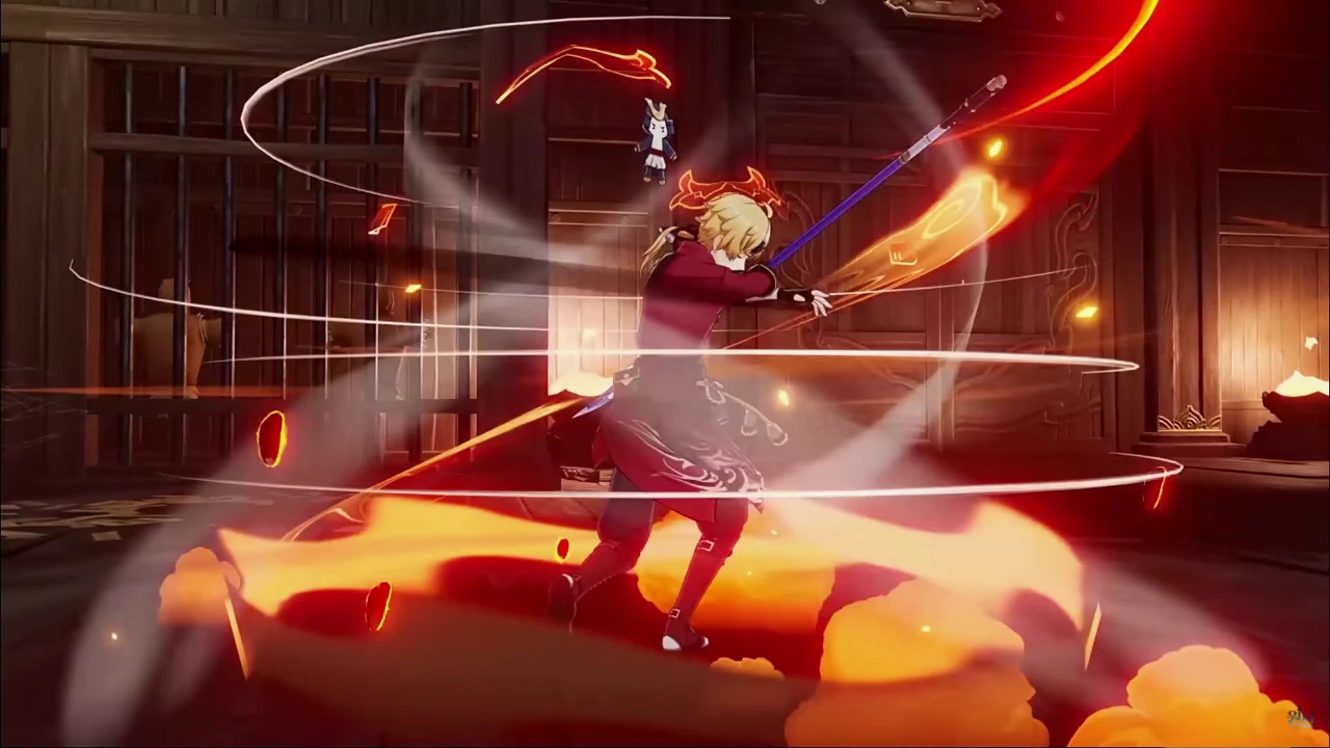 - 현재 필드의 캐릭터가 일반 공격을 가하면 불 원소 범위 피해를 주고 <타오르는 우명의 방패>를 소환 (열화의 붕괴 효과)