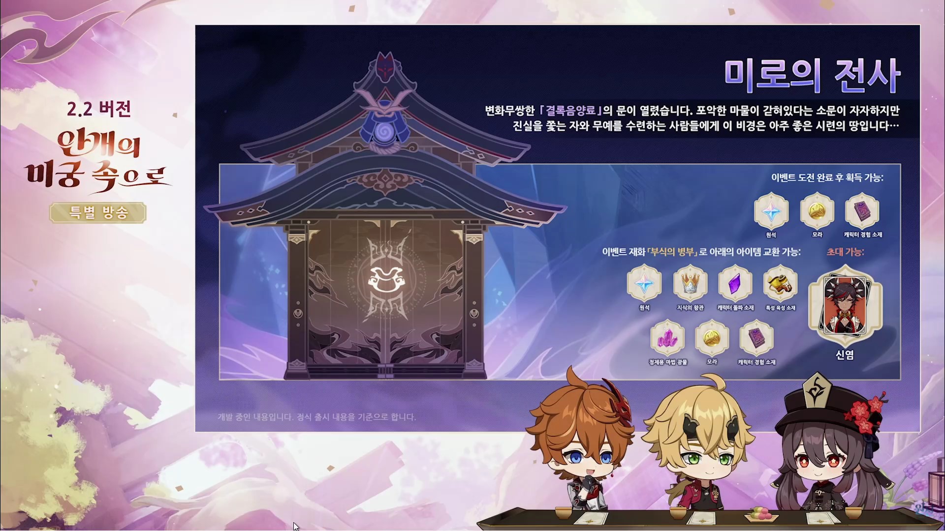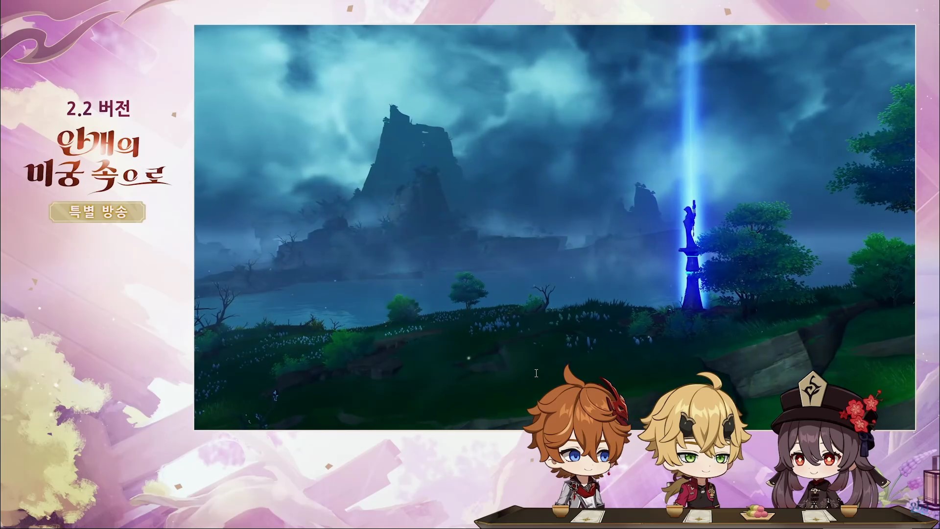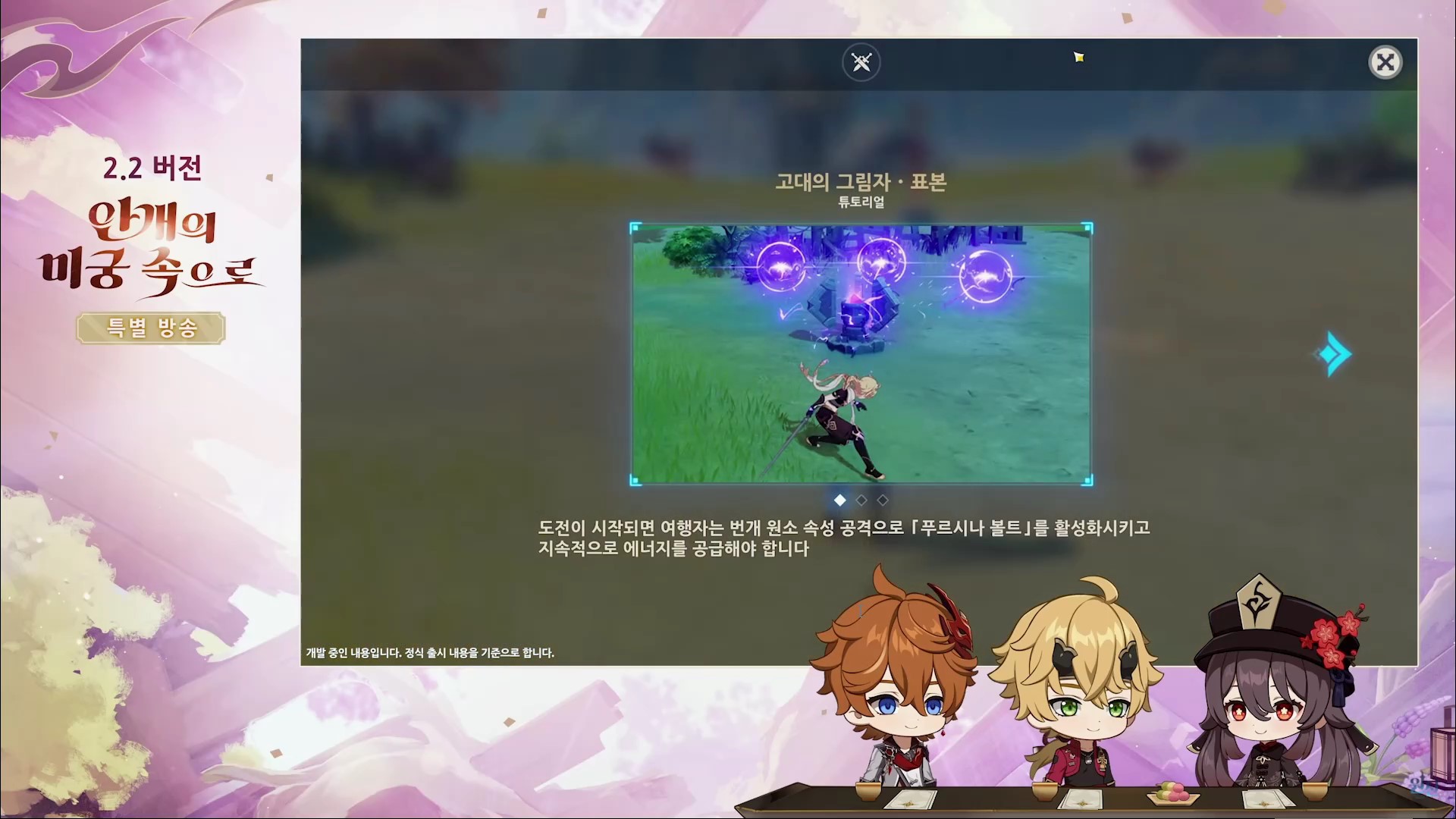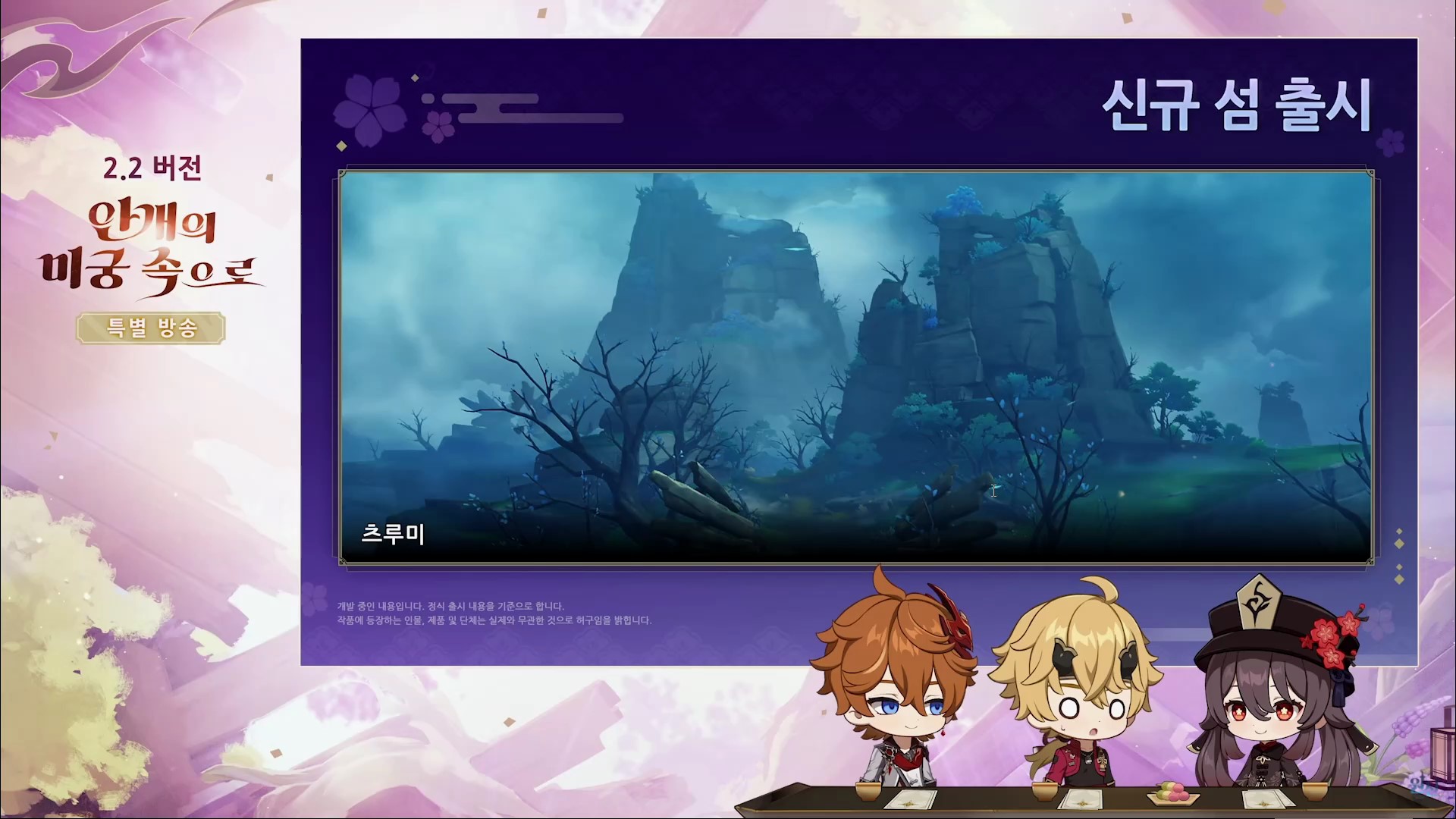 원신 2.2 버전 업데이트(안개의 미궁 속으로) 방송을 간략하게 정리한 내용입니다.