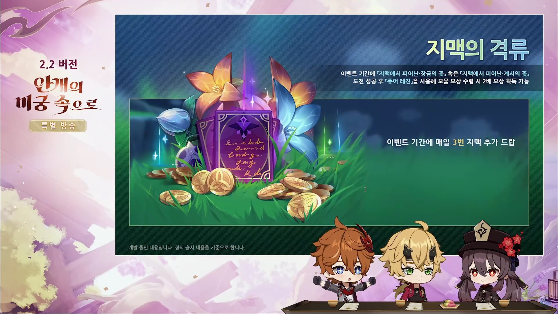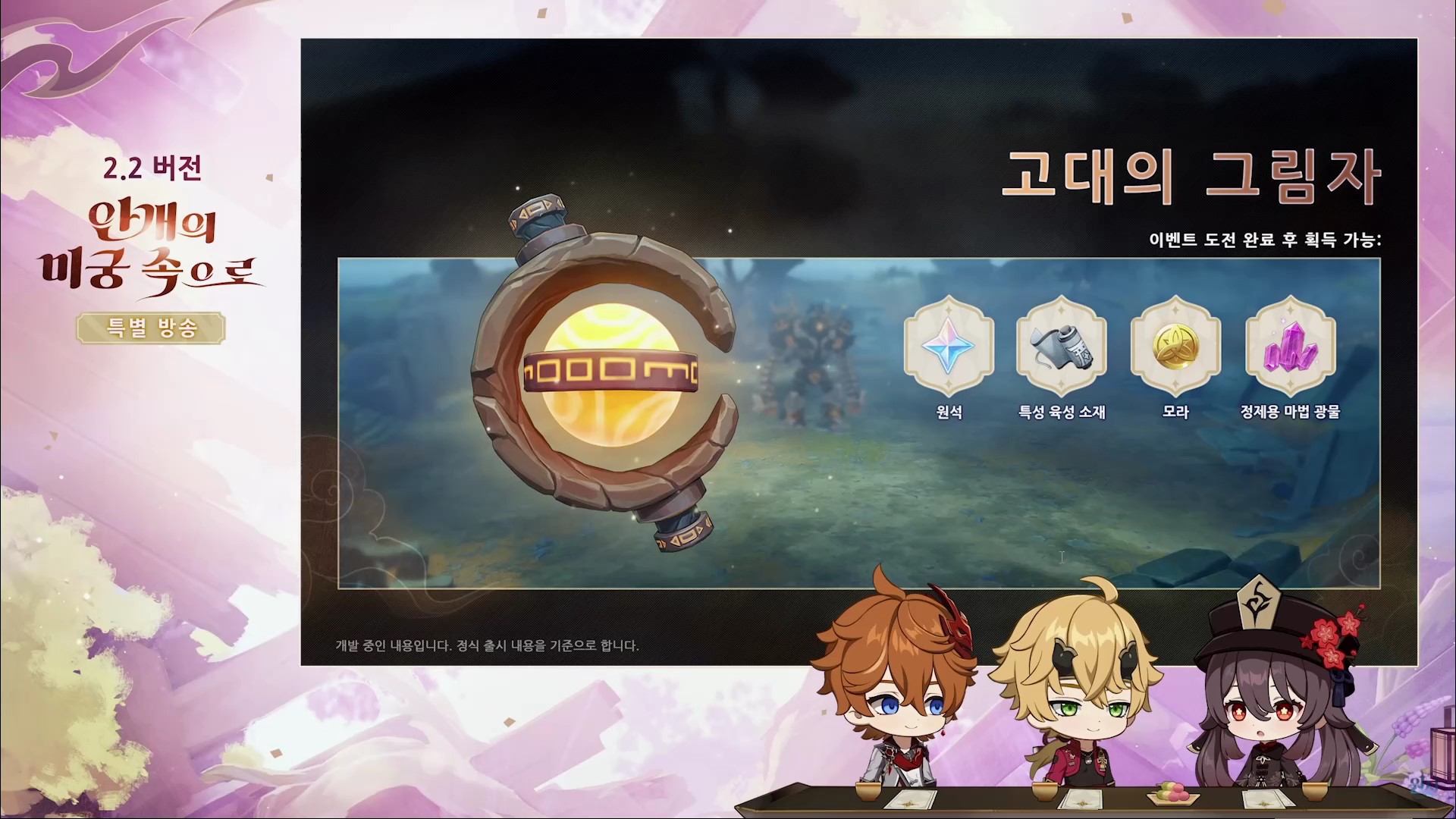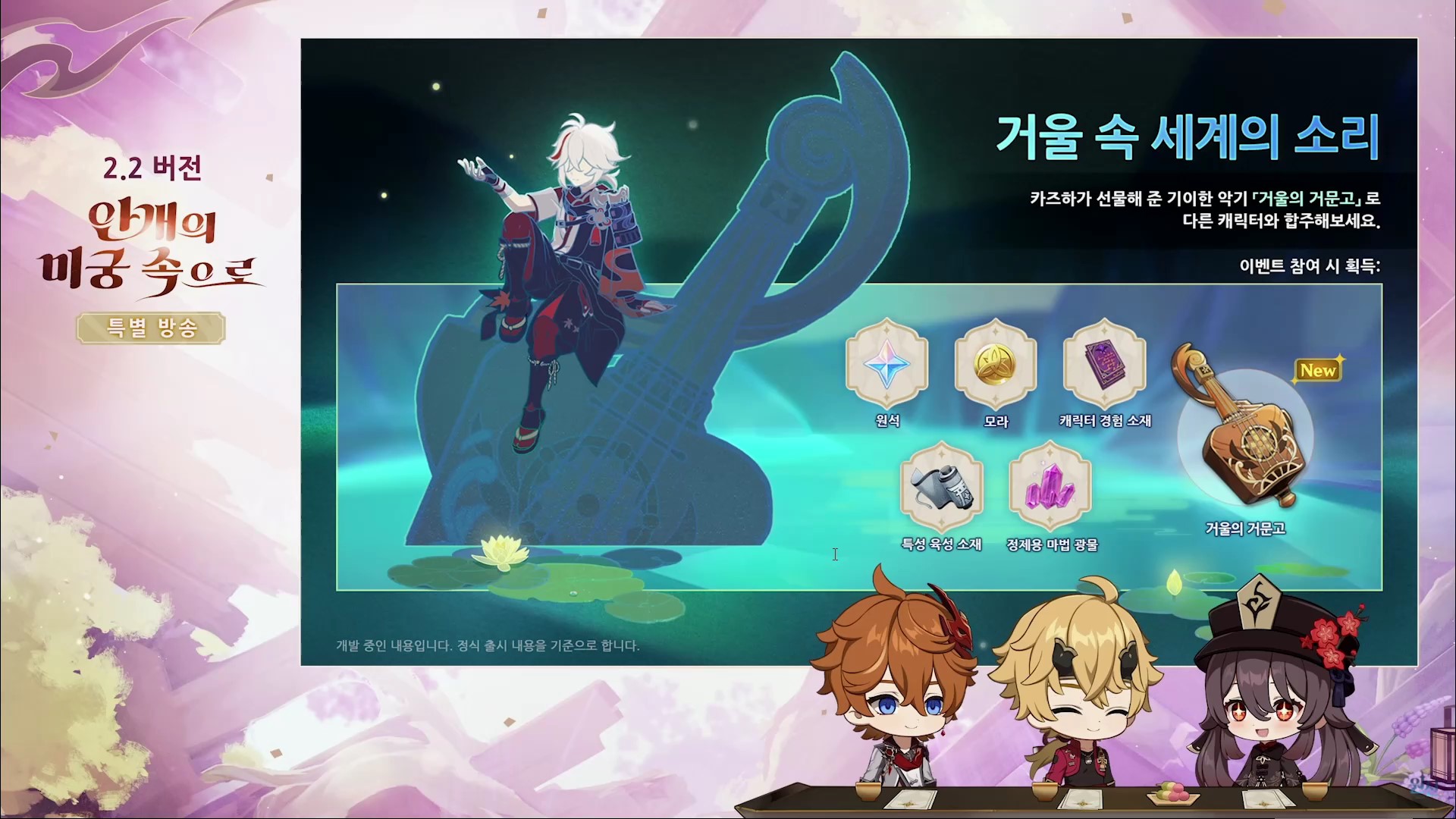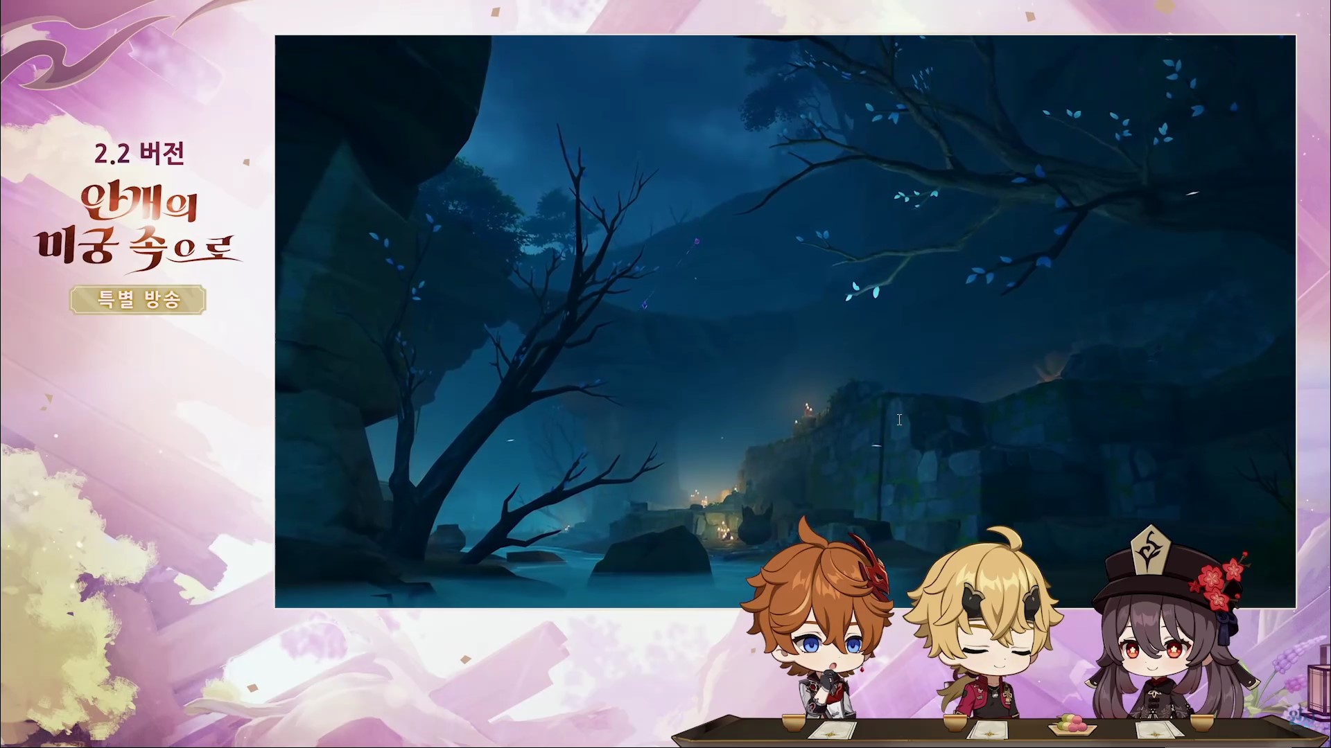 원신 2.2 버전 업데이트(안개의 미궁 속으로) 방송을 간략하게 정리한 내용입니다.
