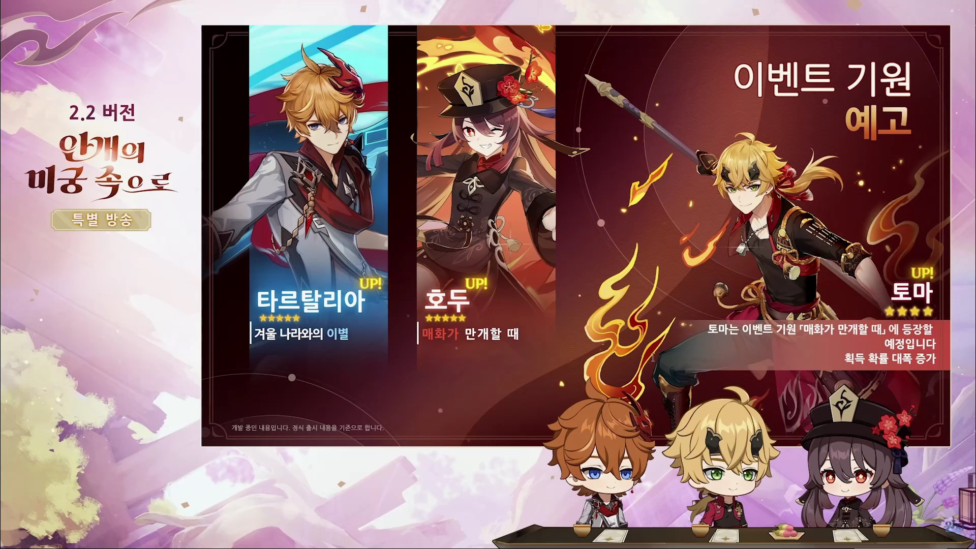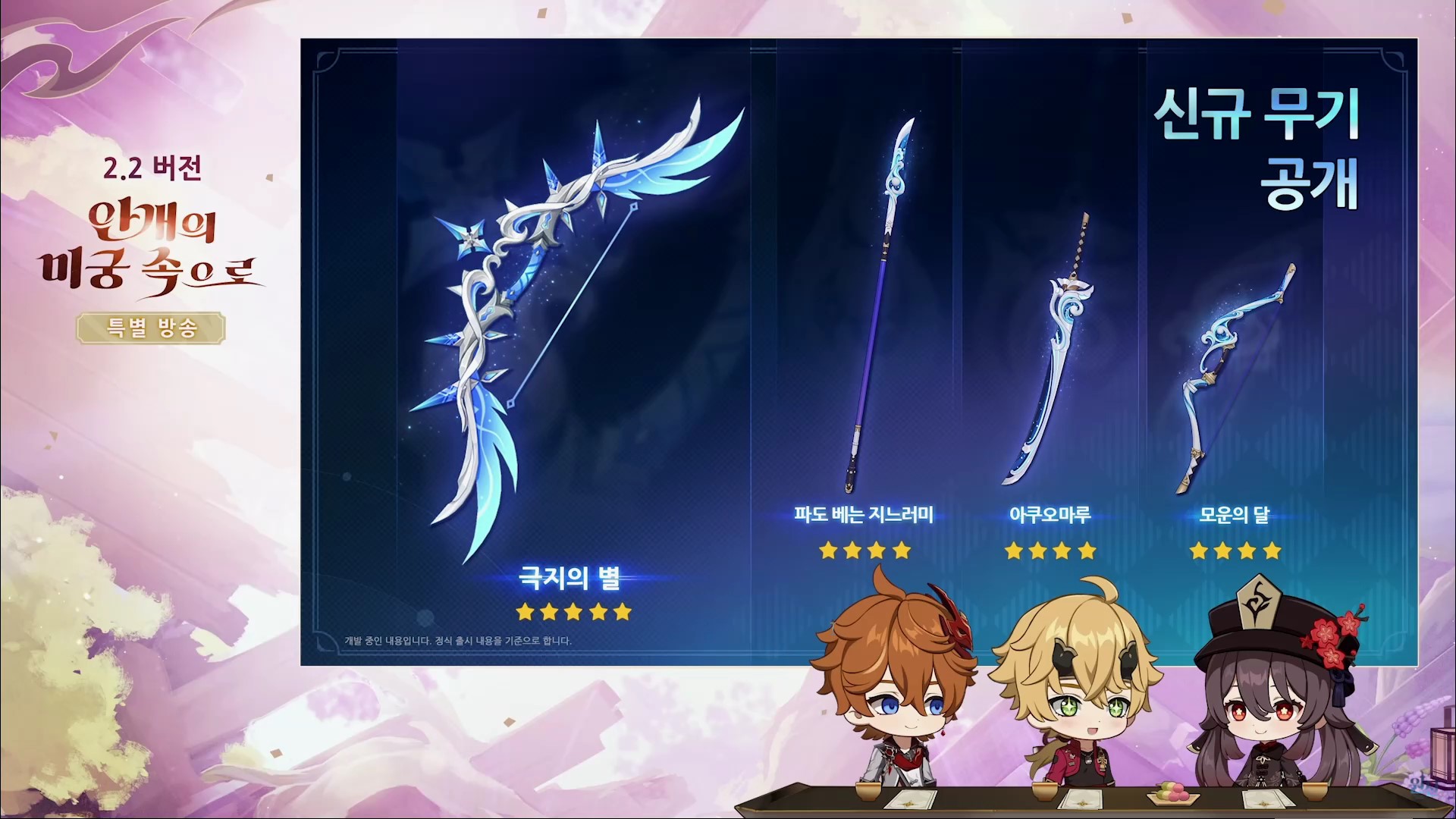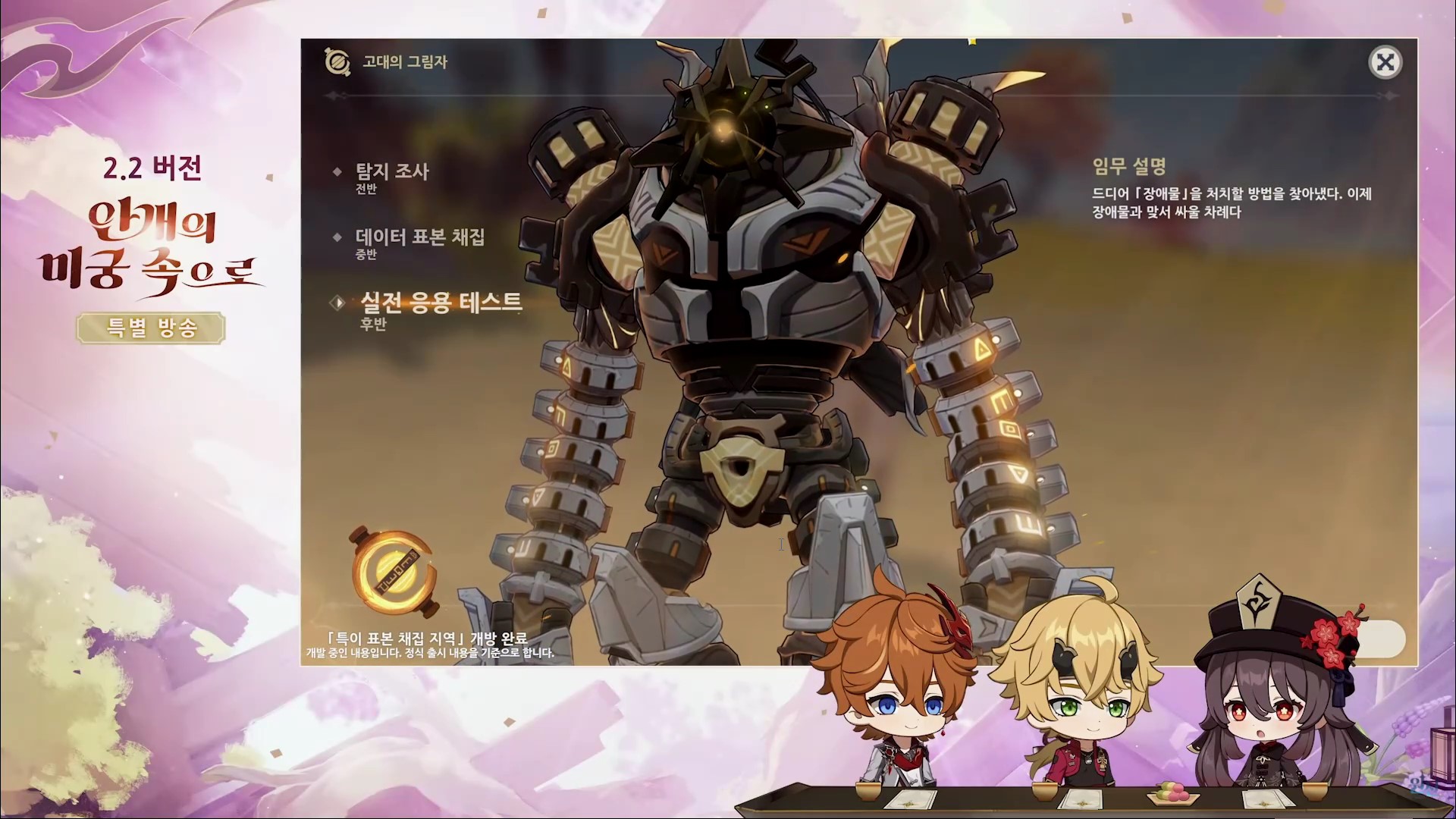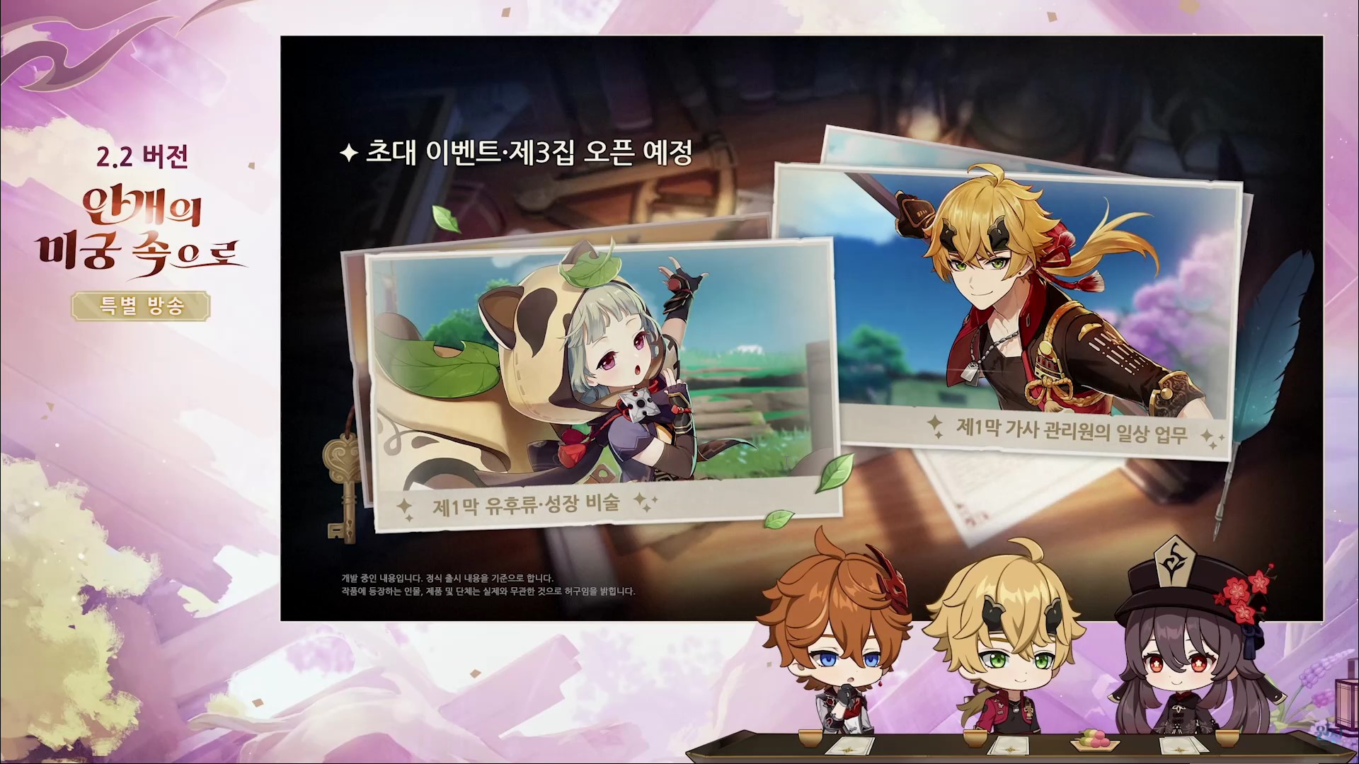 원신 2.2 버전 업데이트(안개의 미궁 속으로) 방송을 간략하게 정리한 내용입니다.