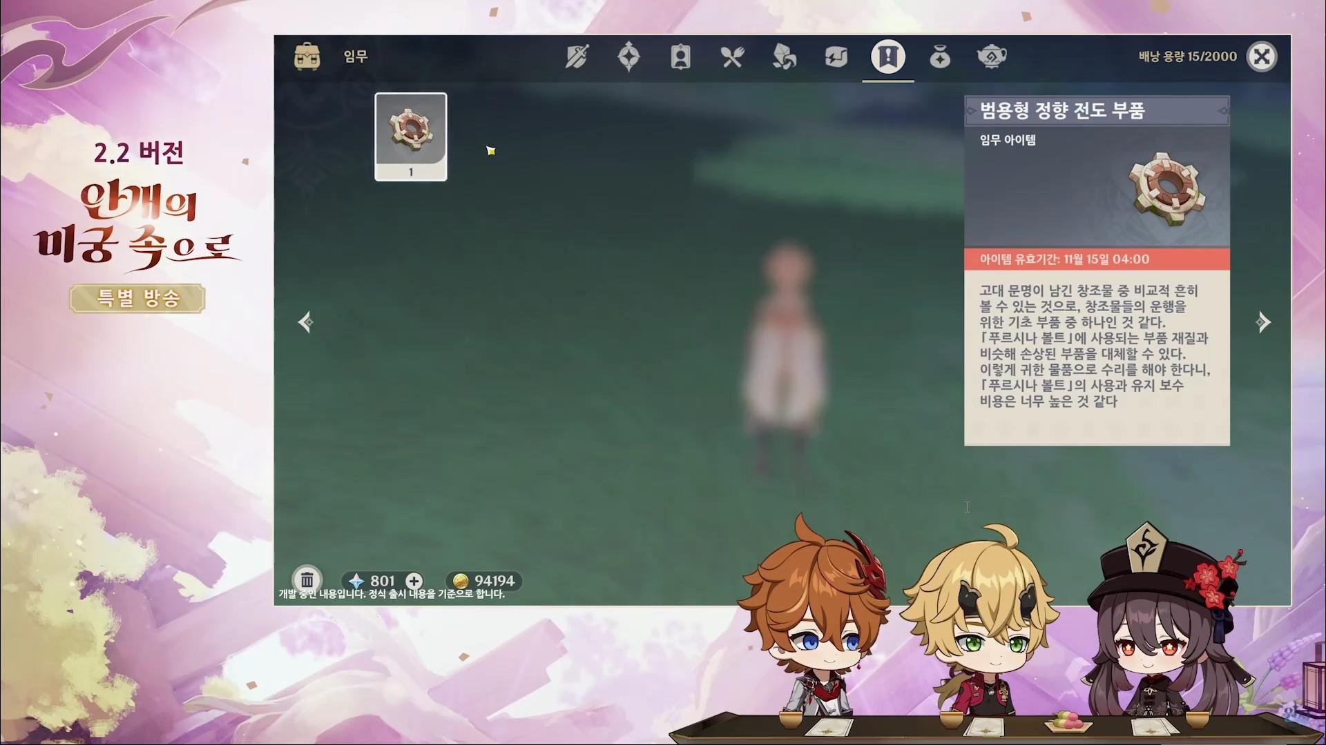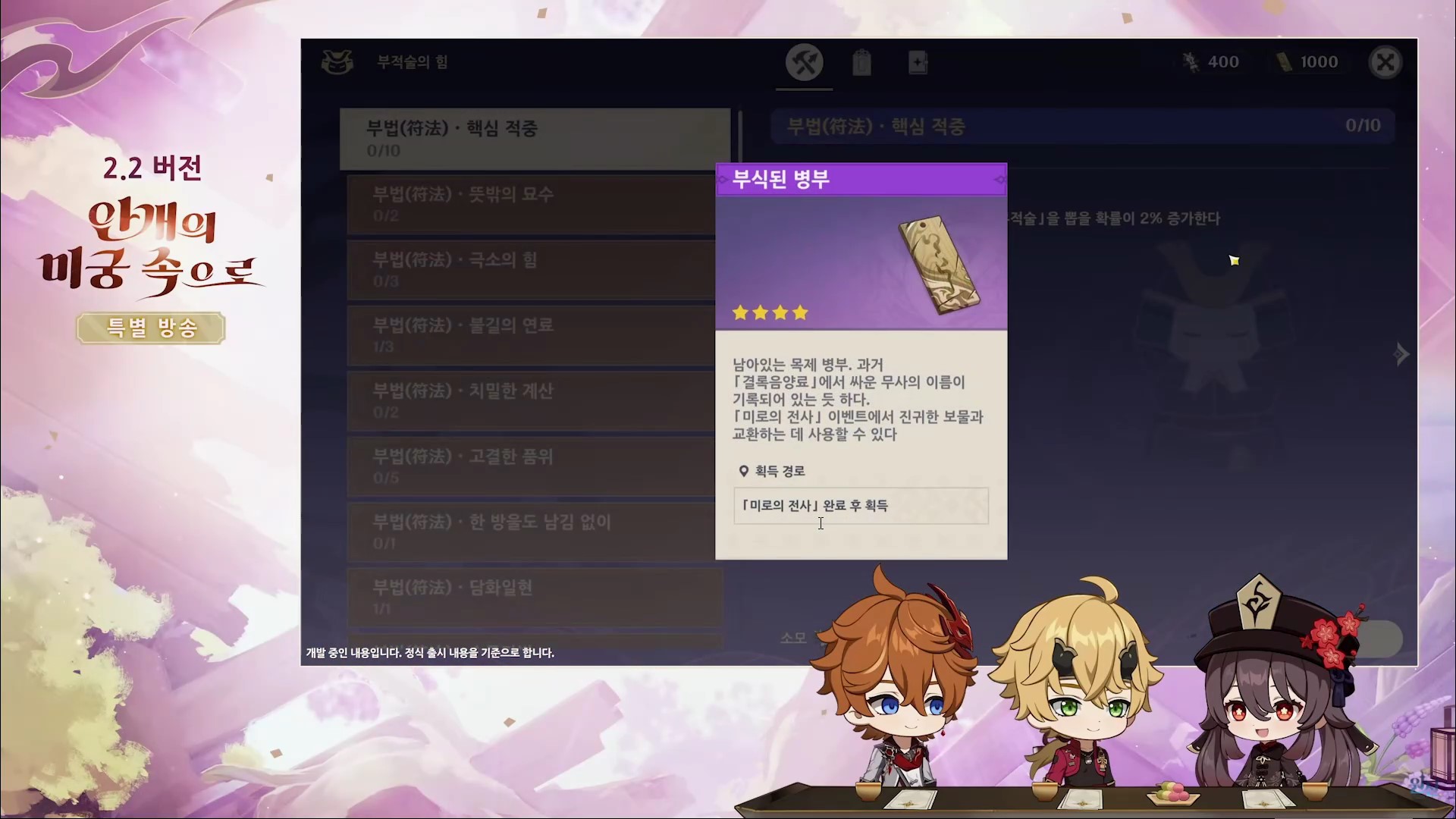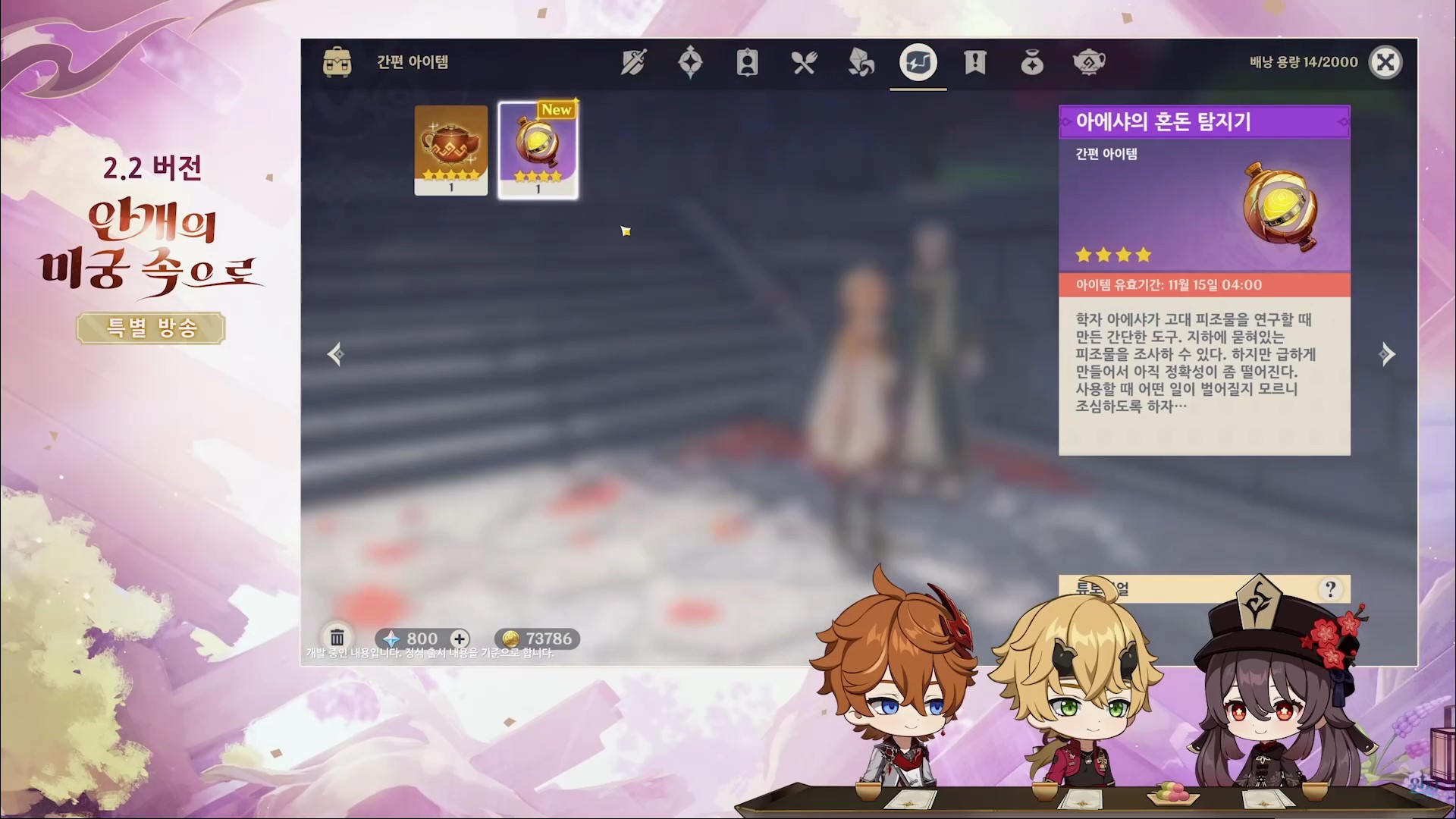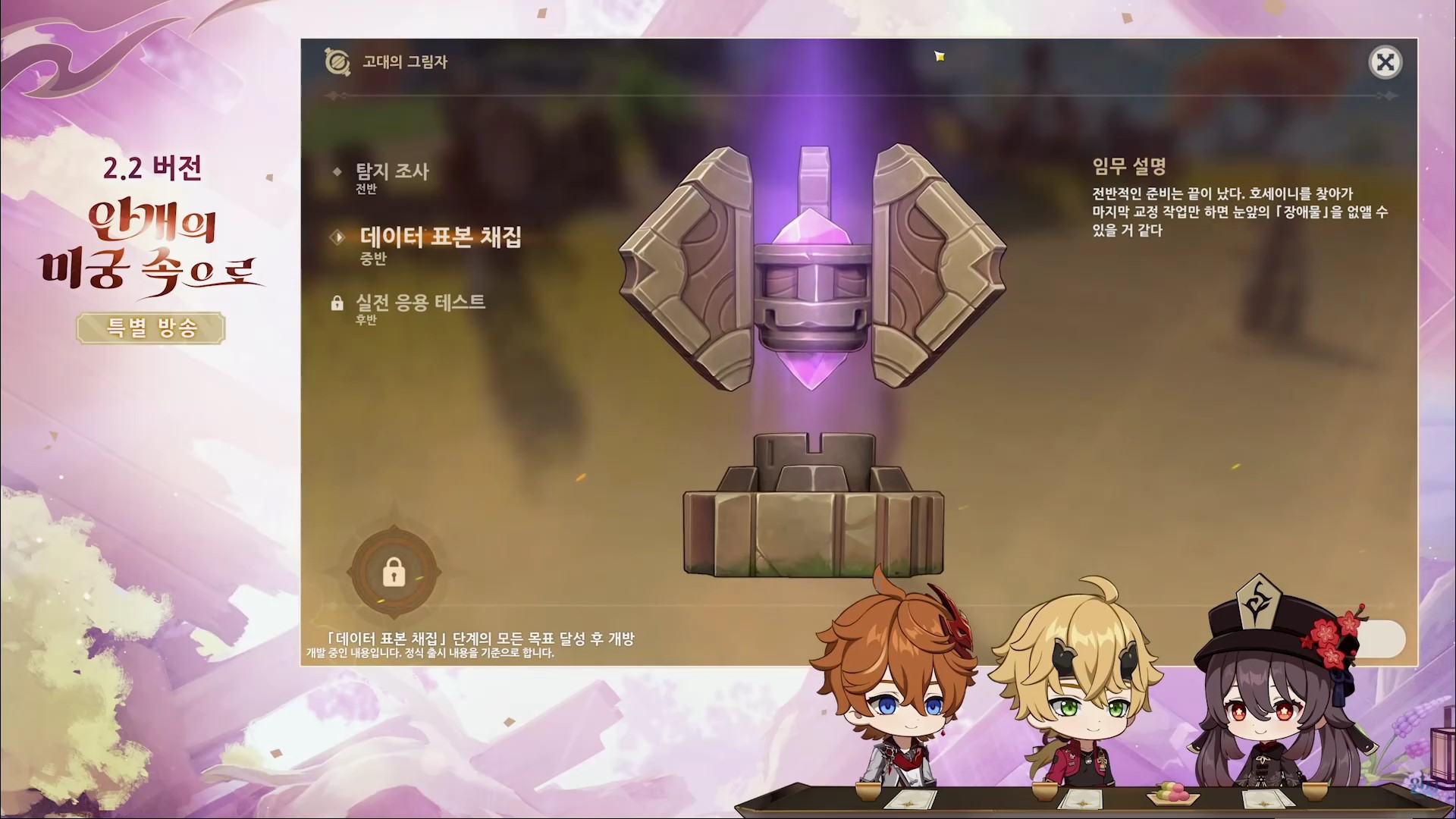 원신 2.2 버전 업데이트(안개의 미궁 속으로) 방송을 간략하게 정리한 내용입니다.