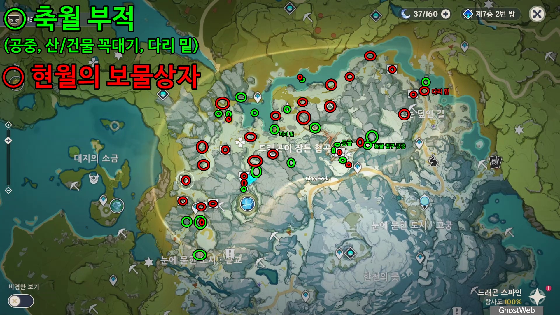 [원신] 반암의 길 - 축월 부적, 현월의 보물상자 위치 정리 (달빛 속 광경, 달빛을 찾아서, 축월절