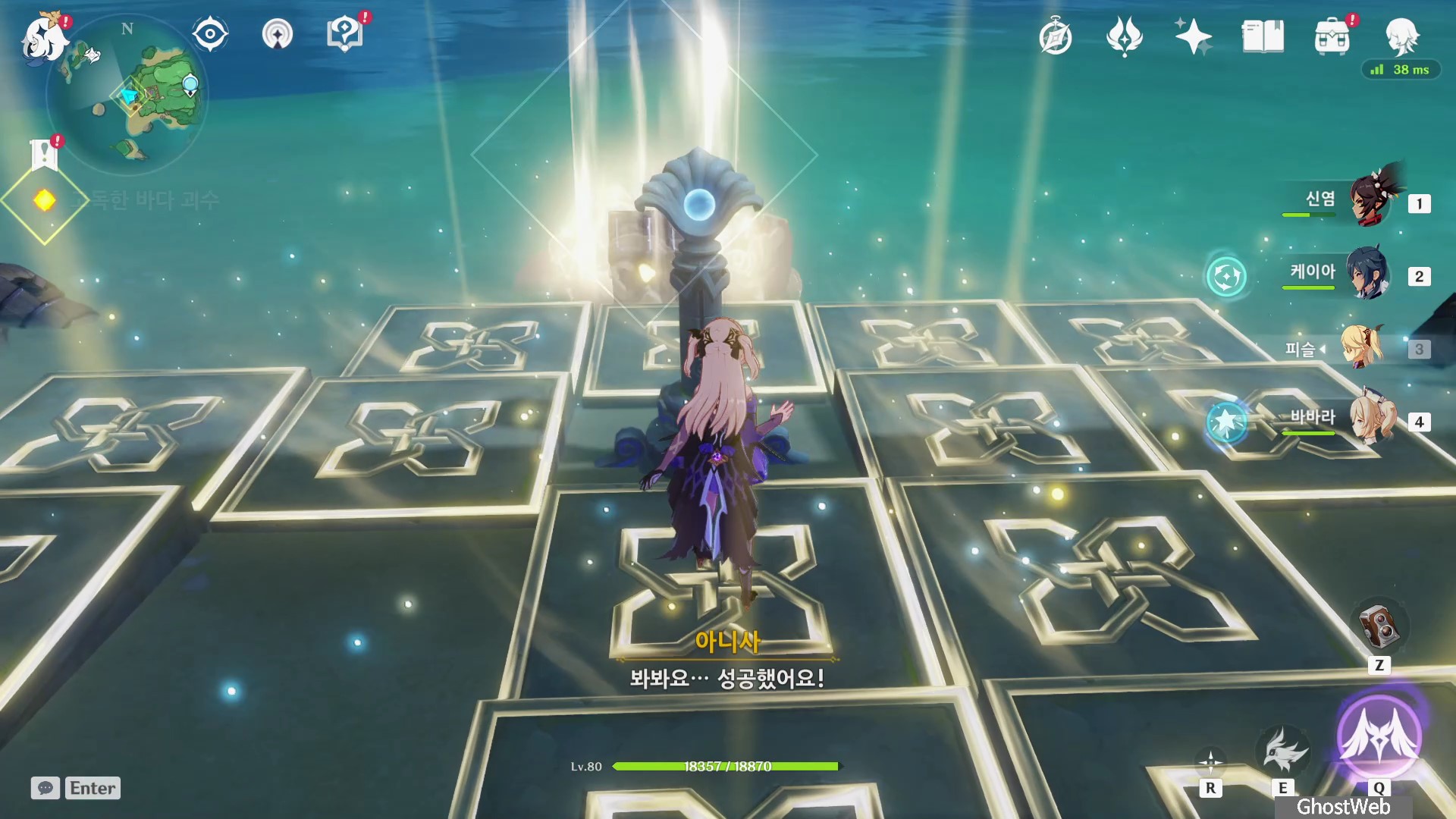 5. 와타츠미 존상의 수수께기 완료하기 (발판 퀴즈 풀기)
