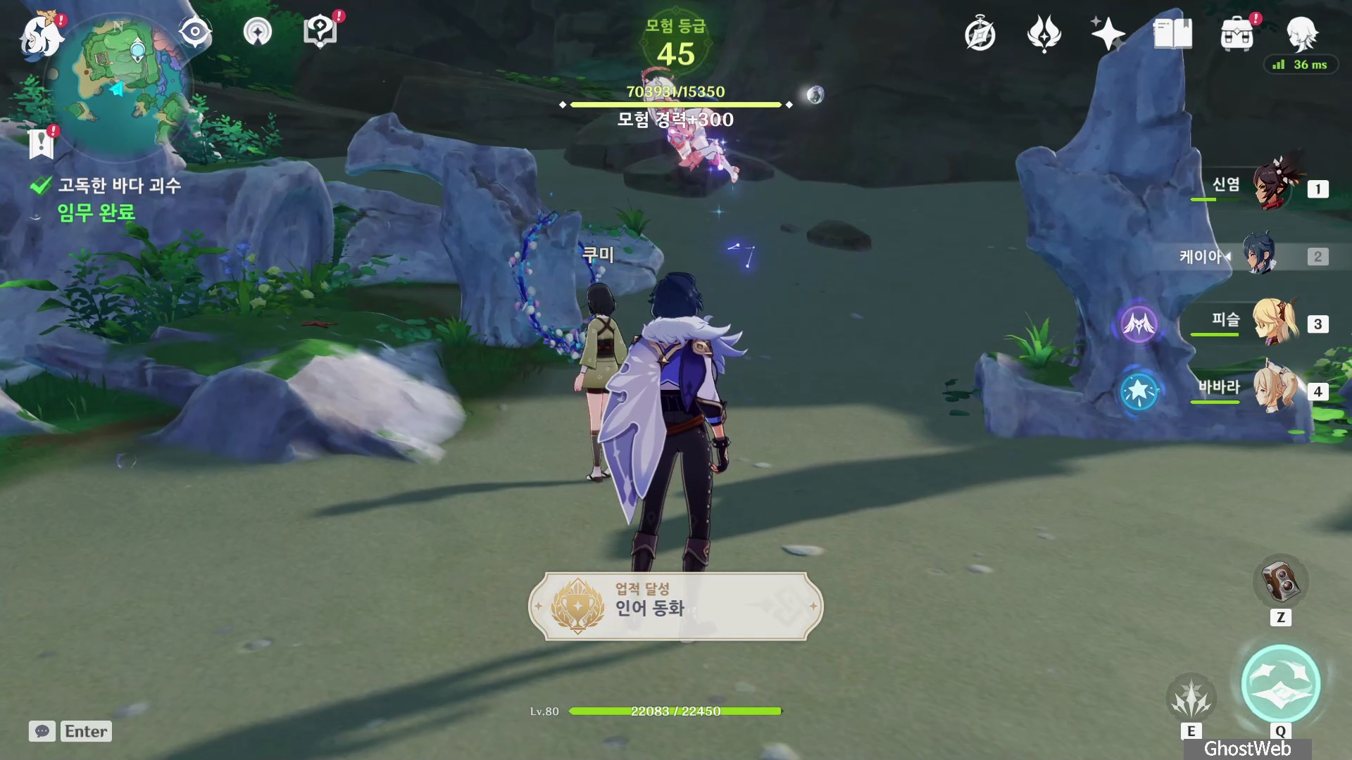 쿠미, 아니사와 대화를 끝으로 <고독한 바다 괴수> 임무를 완료되며 임무 보상과 인어 동화 업적을 달성할 수 있어요.