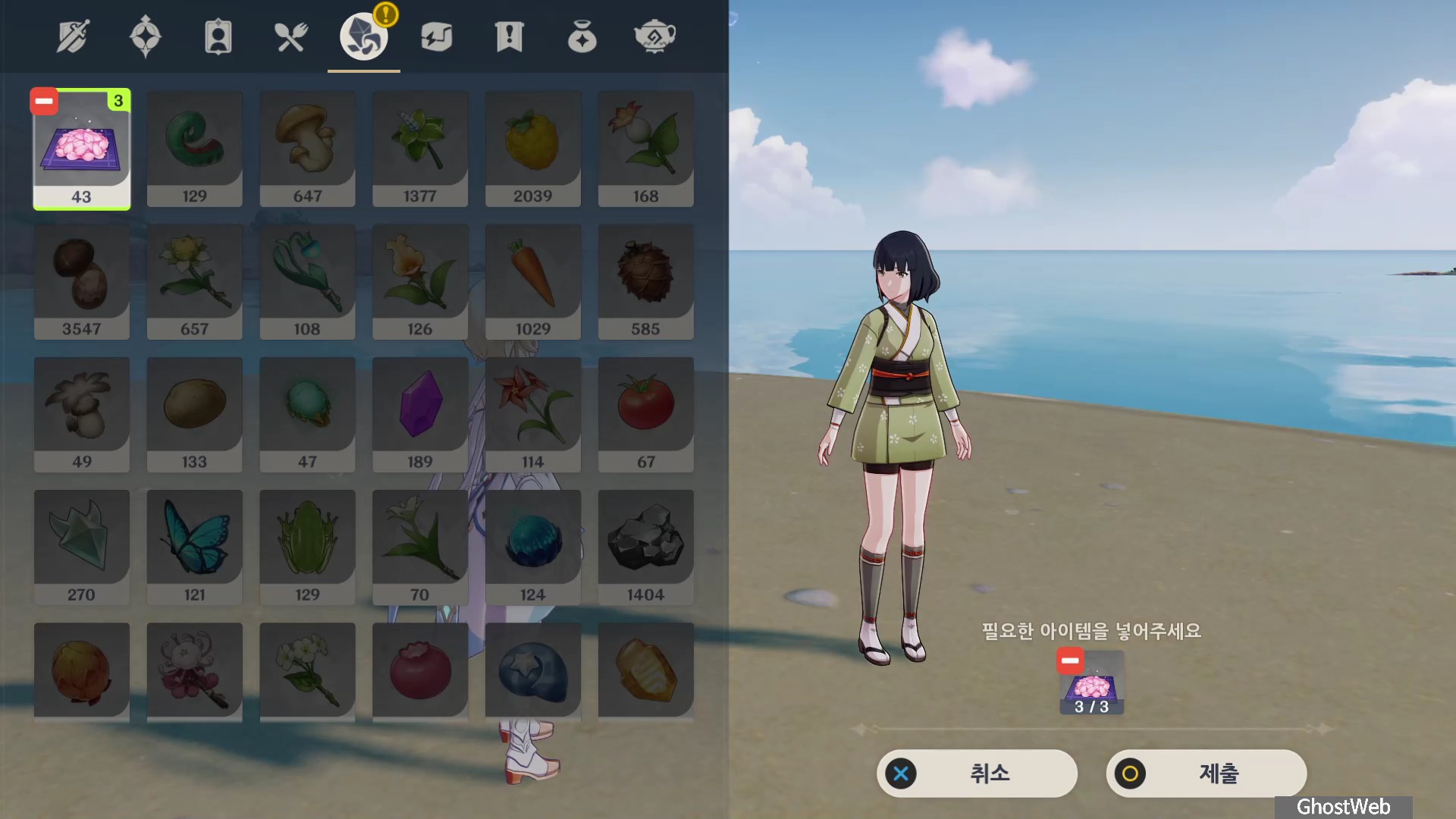1. 쿠미에게 벚꽃 수구 3개 건네기