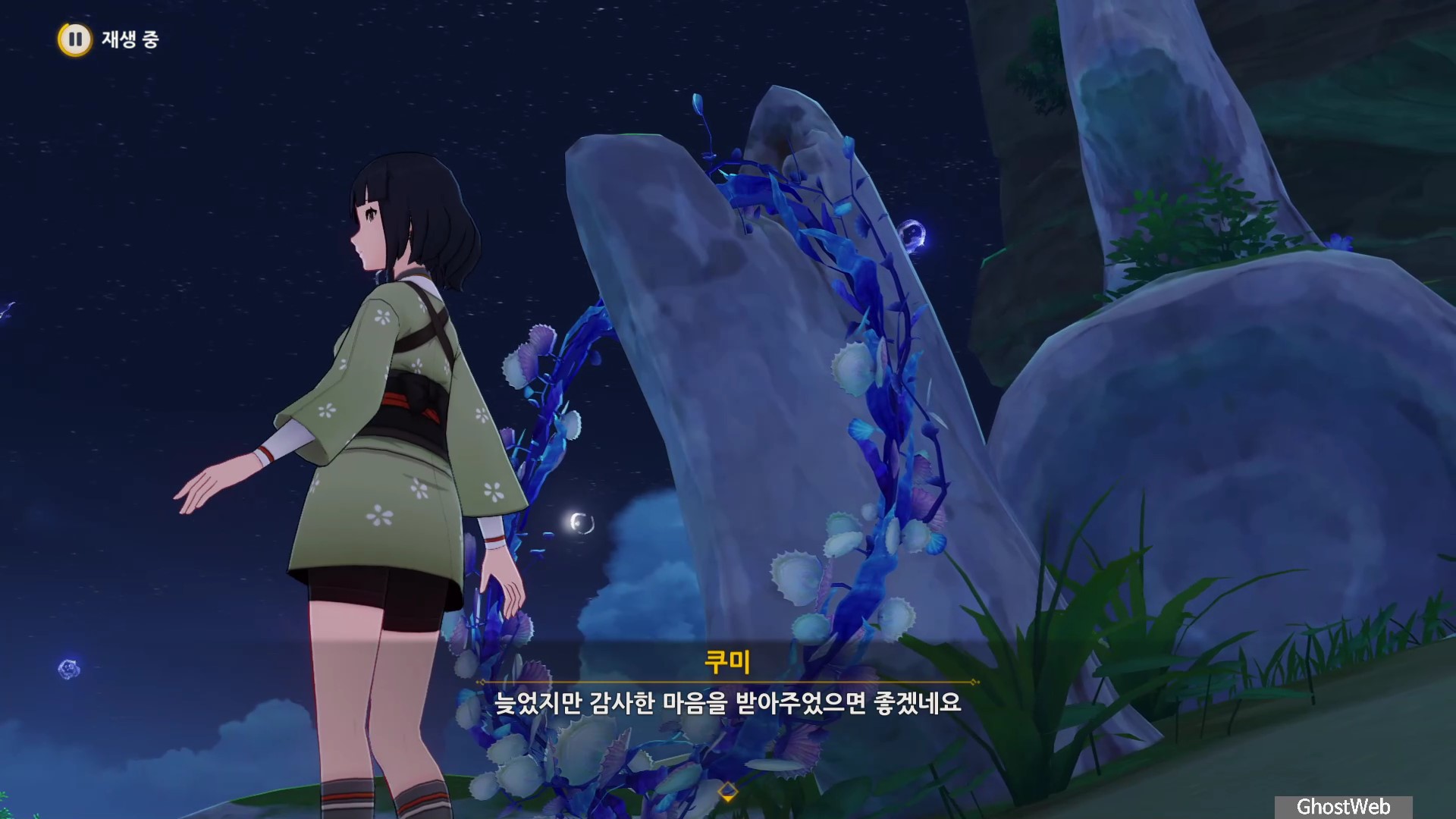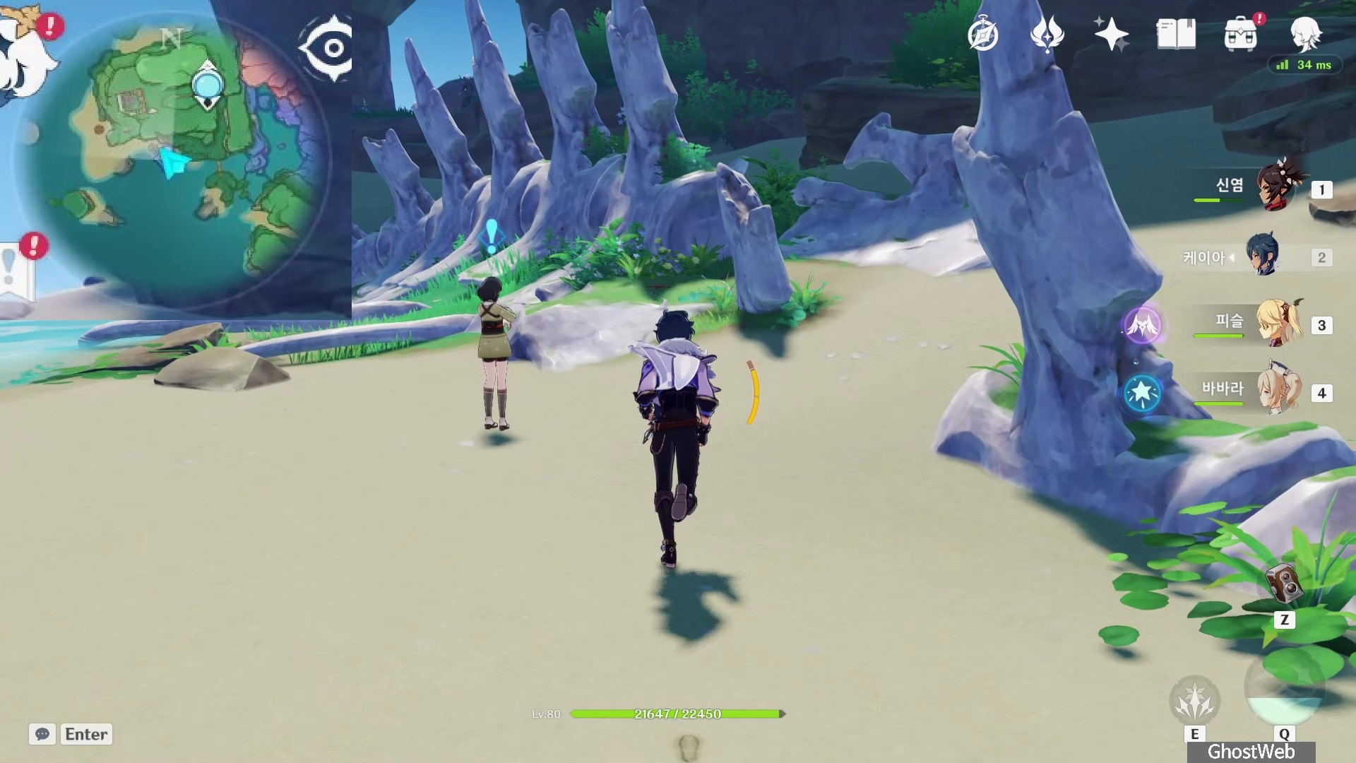 이나즈마에서 제일 왼쪽에 있는 <와타츠미 섬> 신상에서 7시 방향 바닷가로 가면 큰 유골 앞에서 있는 <쿠밍>에게 말을 걸면 이나즈마 평판 임무인 <고독한 바다 괴수>를 진행할 수 있어요.