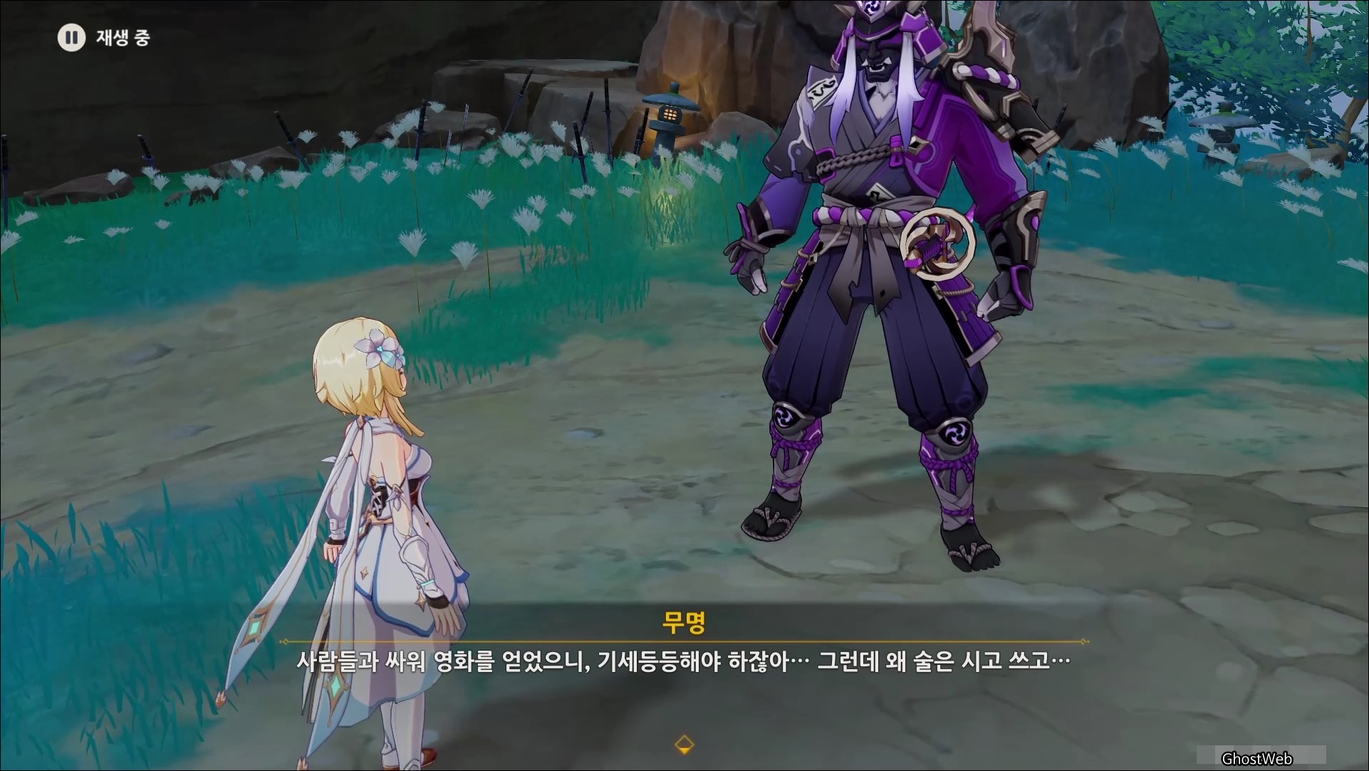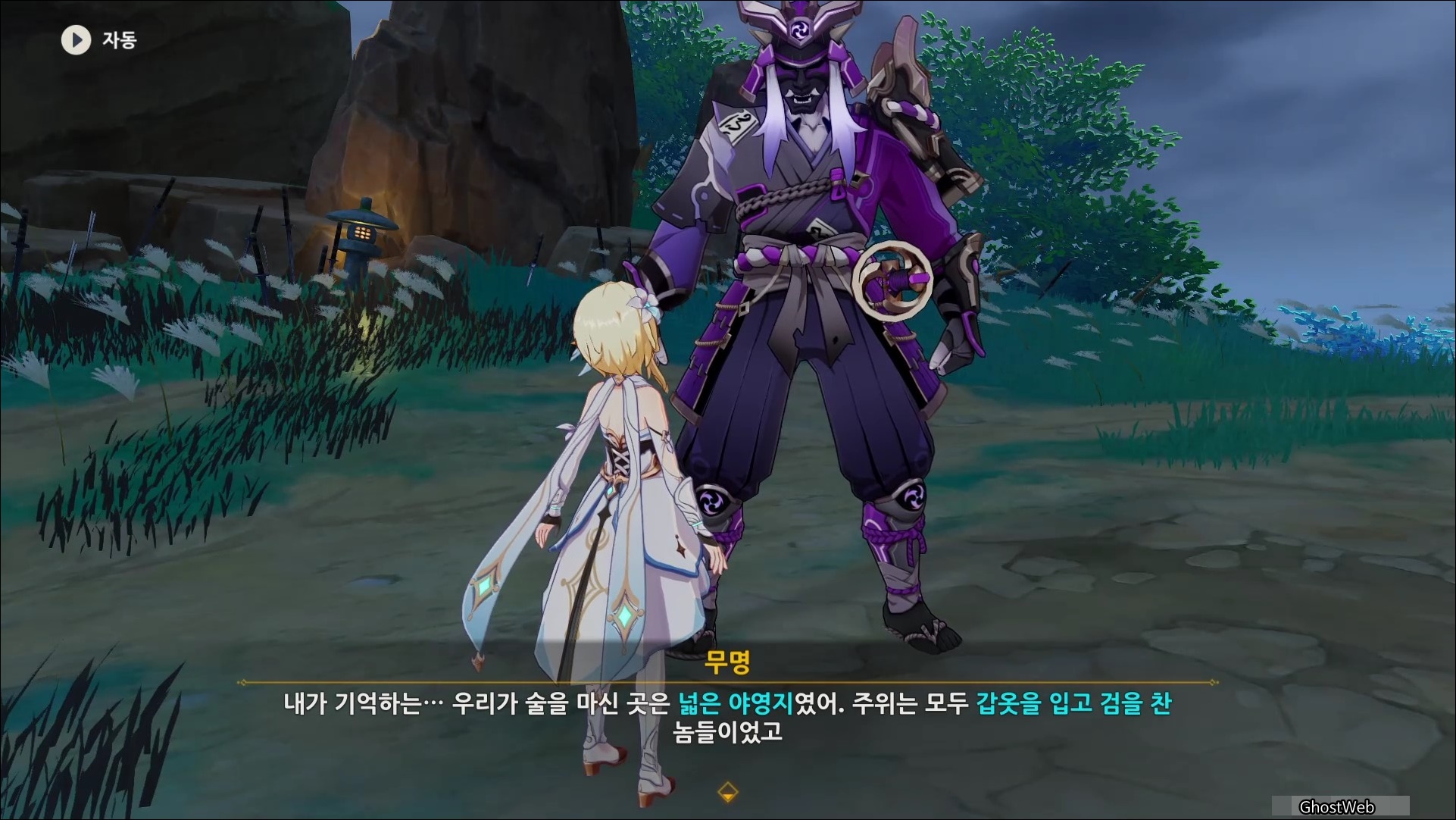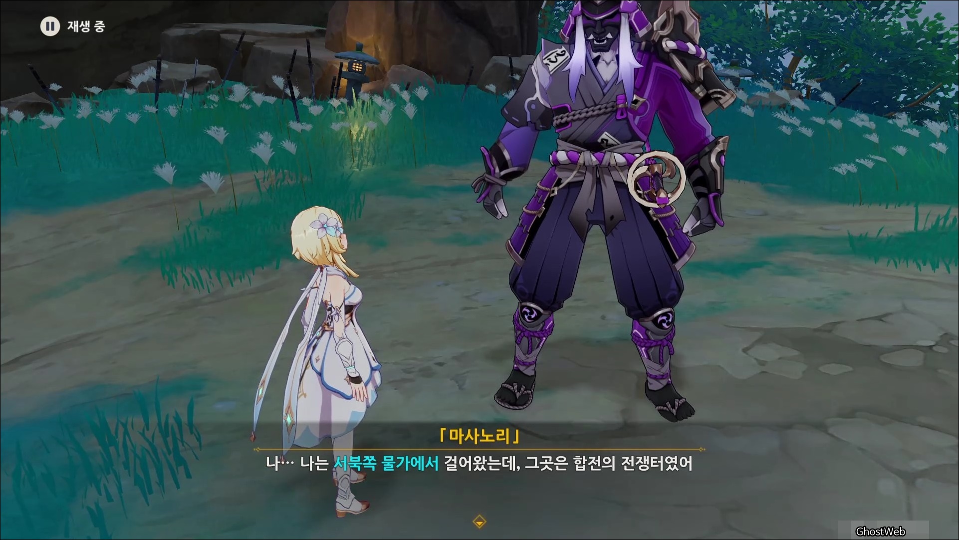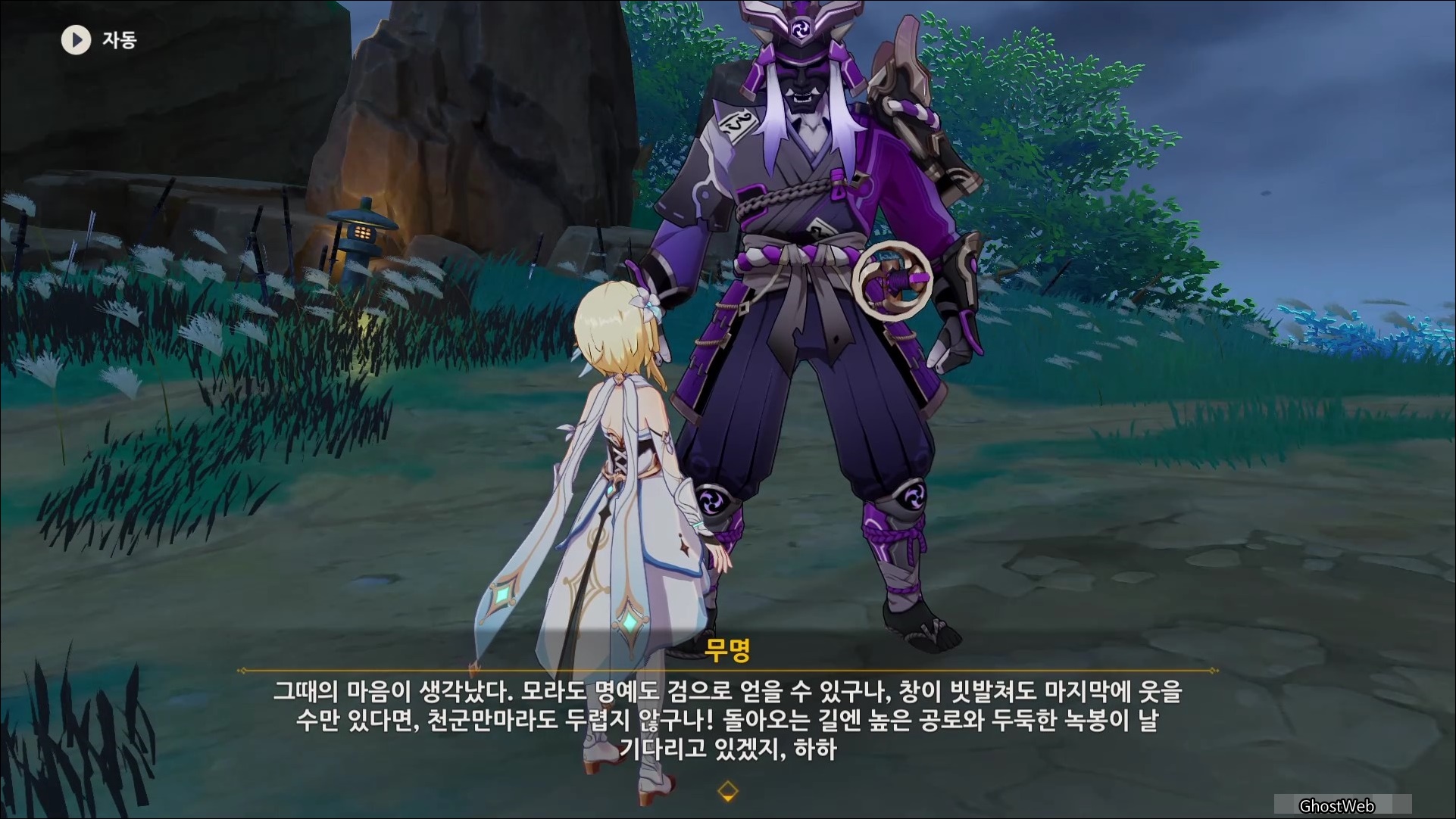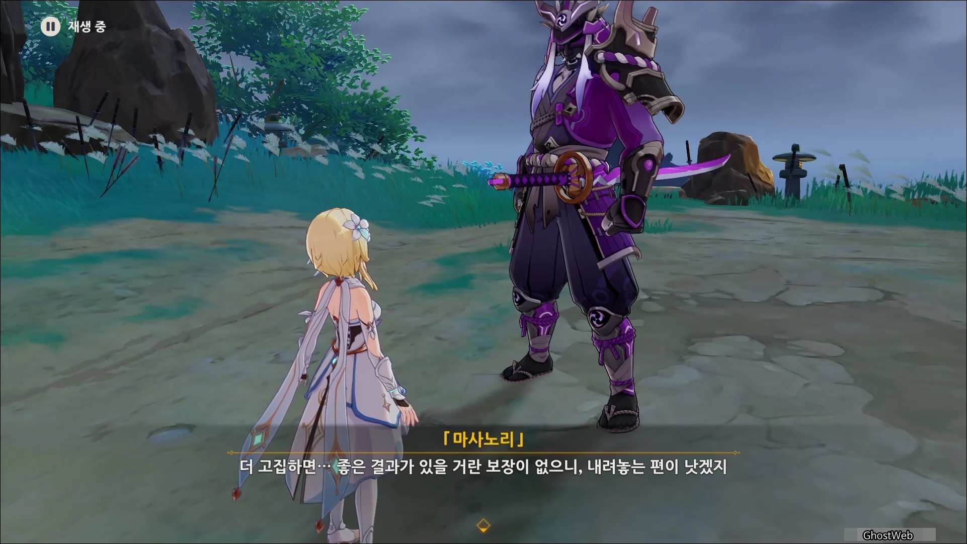 마사노리를 처치하고 다시 대화를 나누면 전쟁터에서 무서워 했던 검이 생각단다고 하며 여행자에게 그 검을 찾아달라고 부탁을 해요.