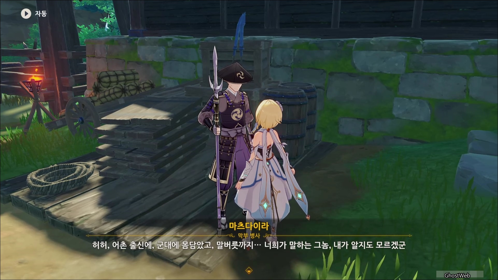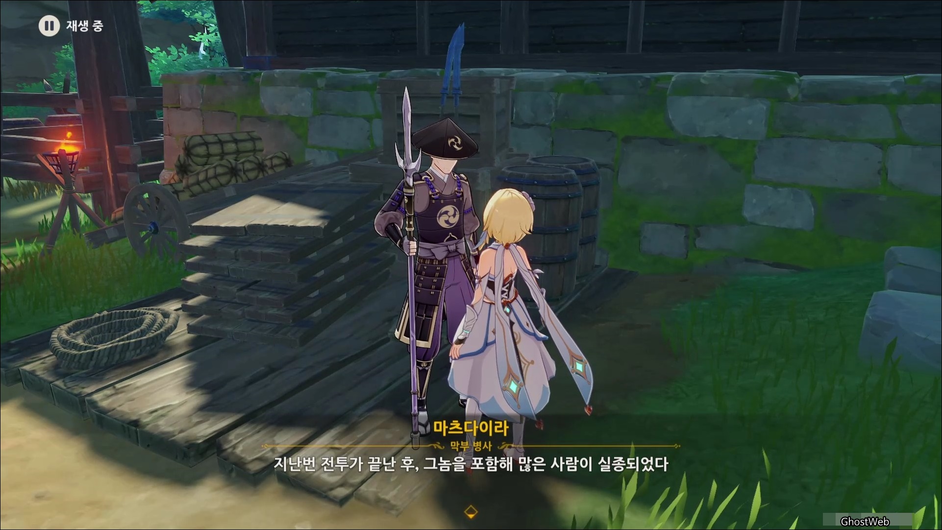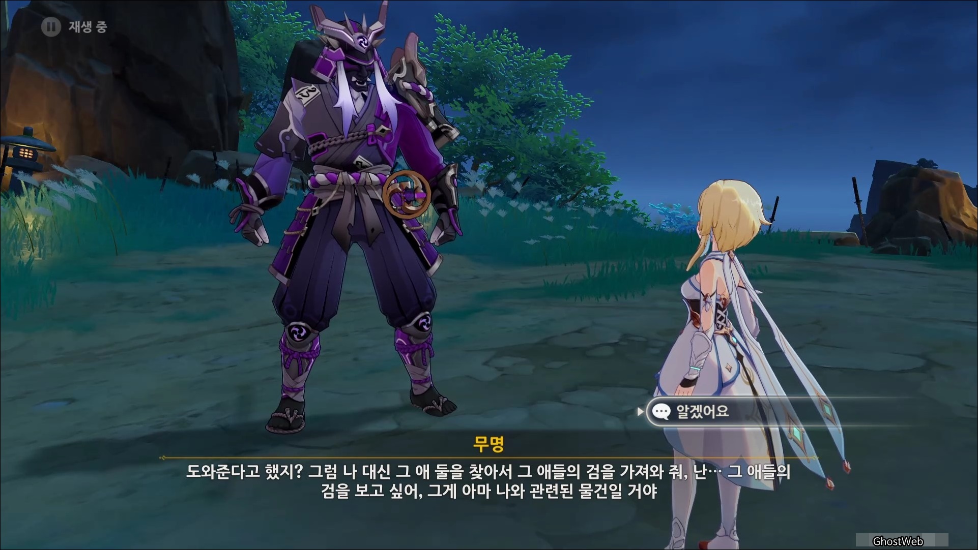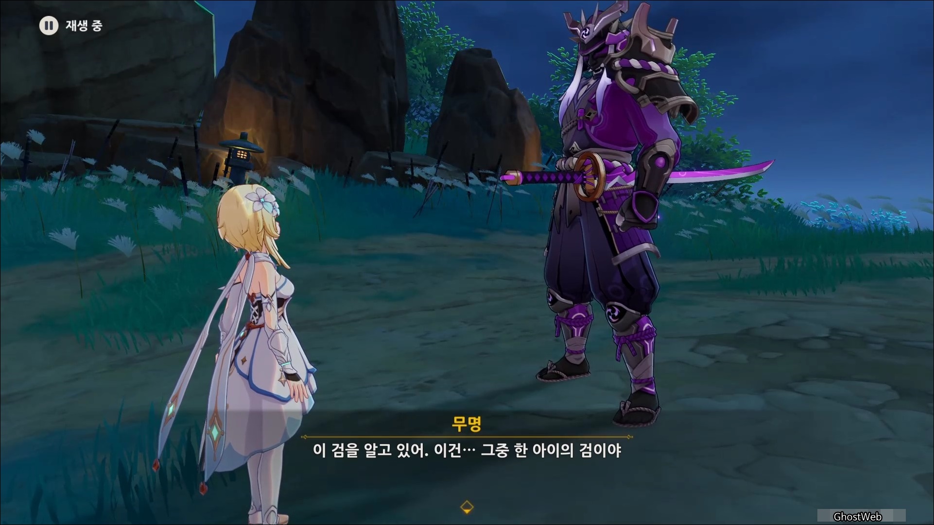 마사노리를 처치하고 다시 대화를 나누면 전쟁터에서 무서워 했던 검이 생각단다고 하며 여행자에게 그 검을 찾아달라고 부탁을 해요.