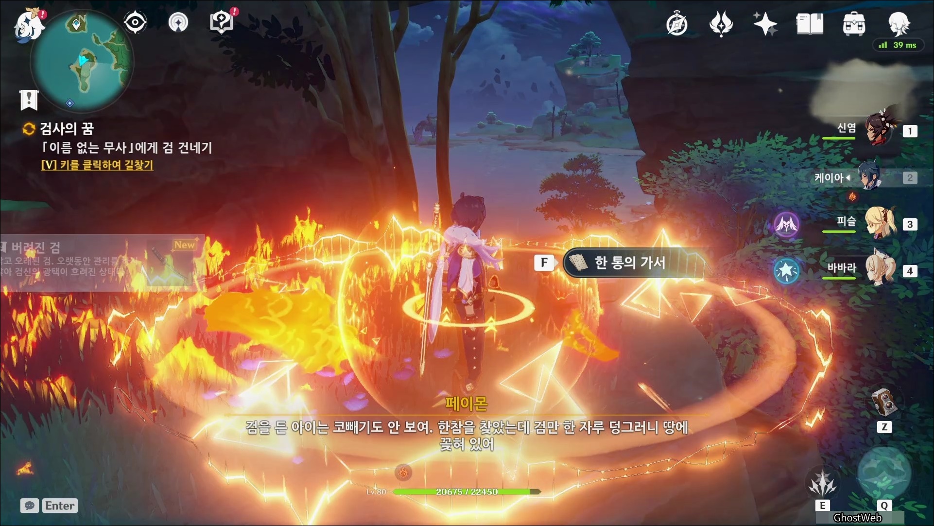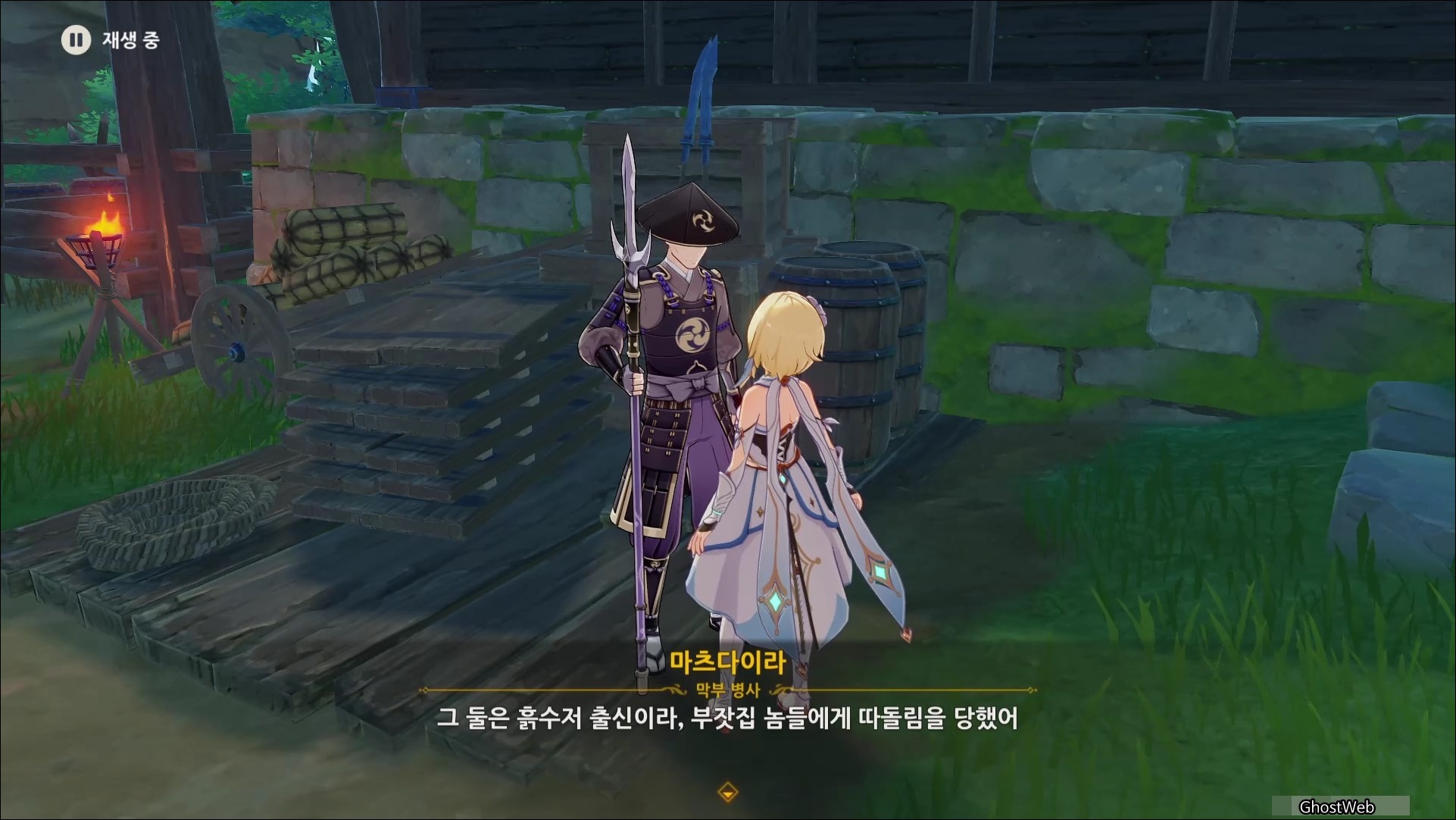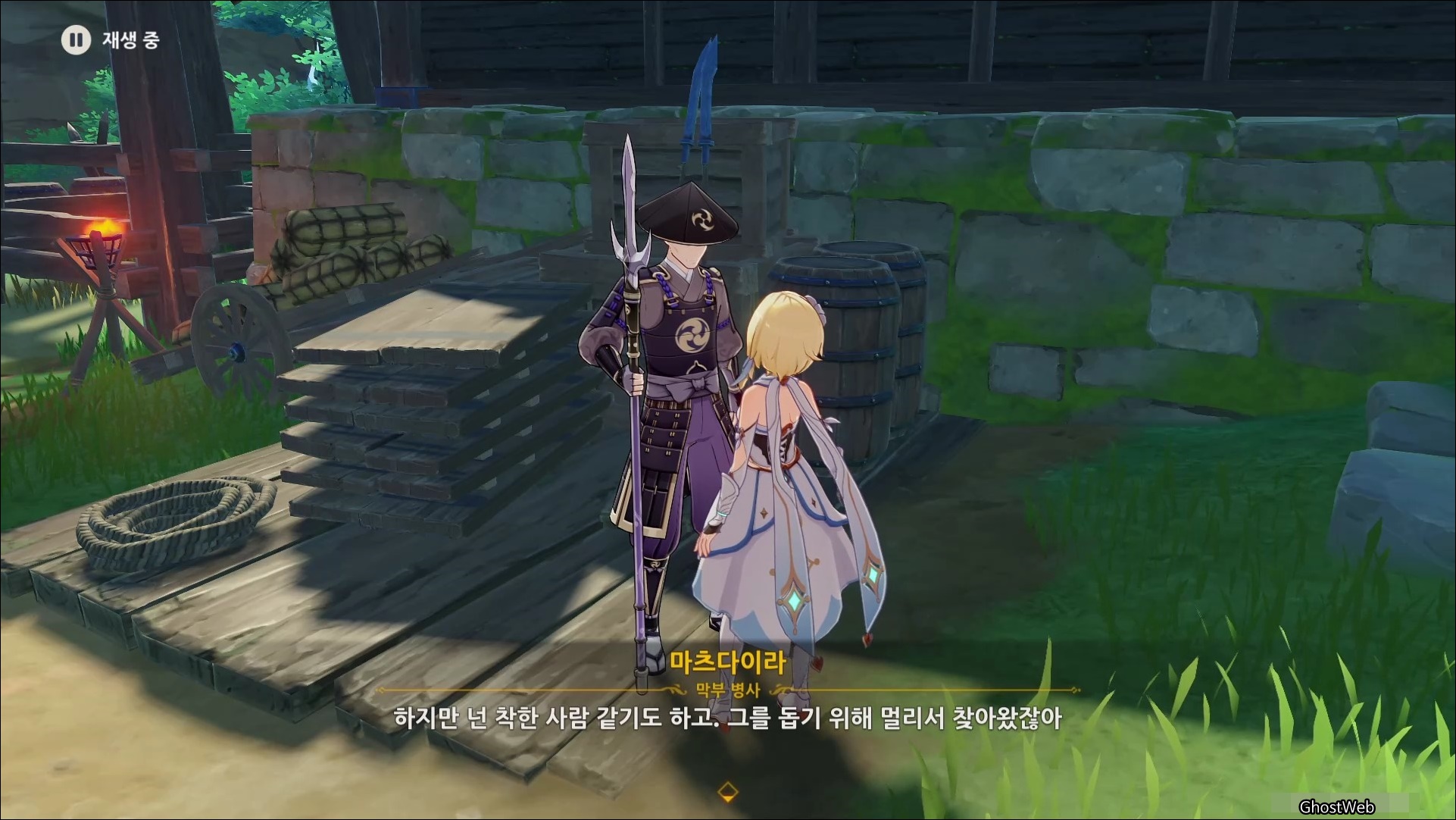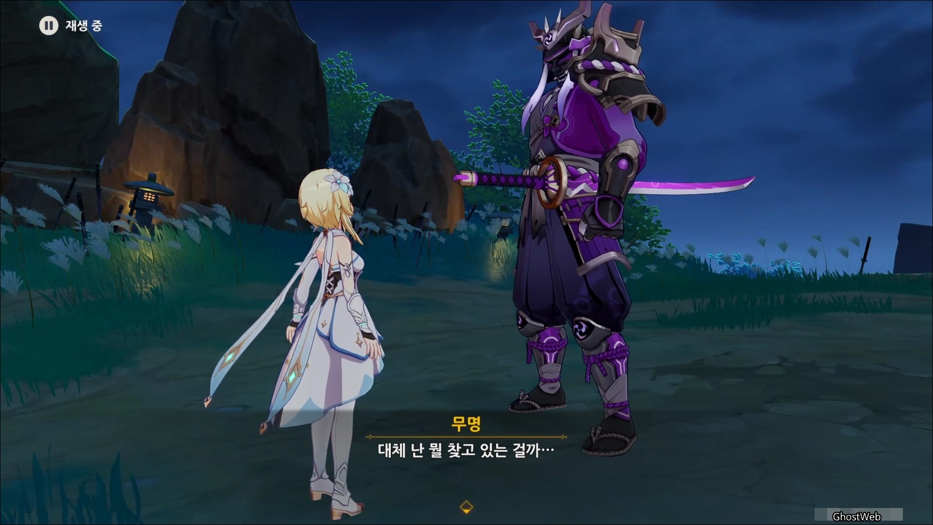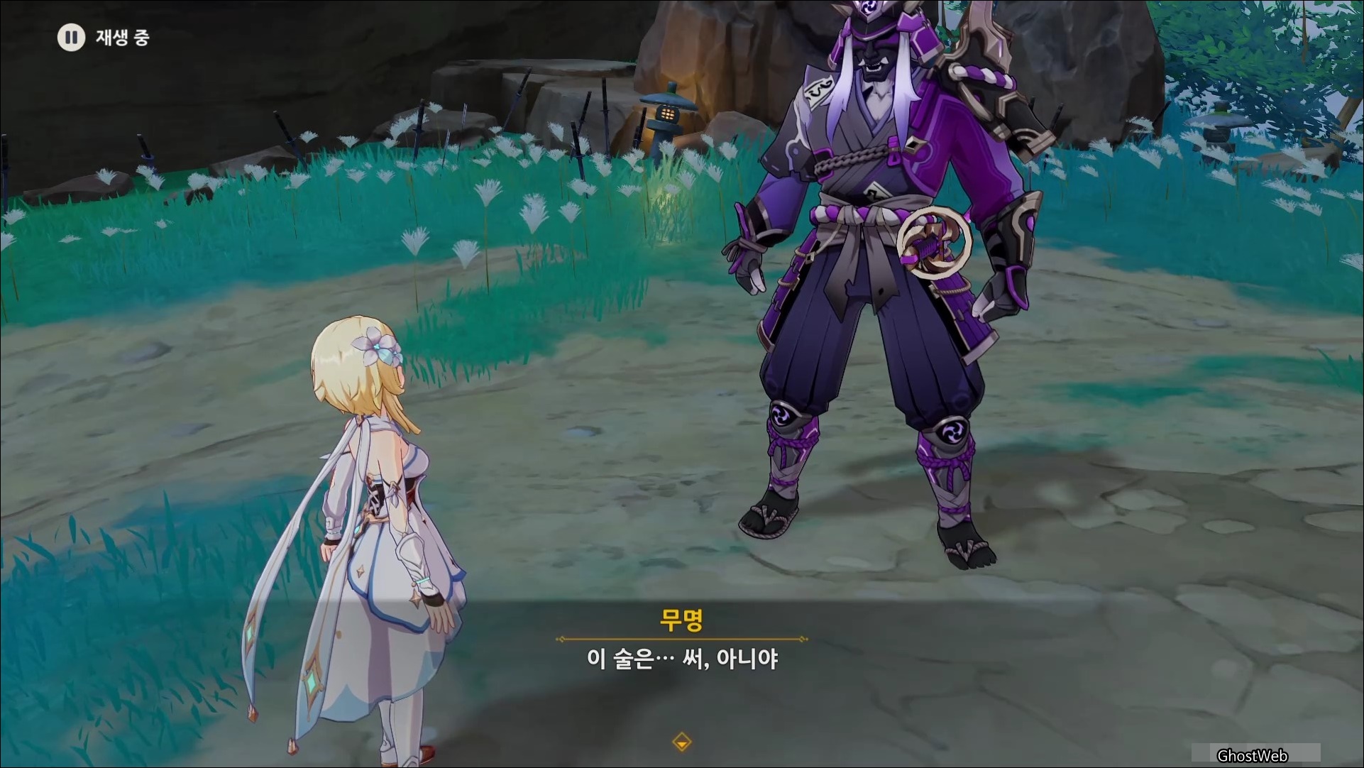 마사노리를 처치하고 다시 대화를 나누면 전쟁터에서 무서워 했던 검이 생각단다고 하며 여행자에게 그 검을 찾아달라고 부탁을 해요.