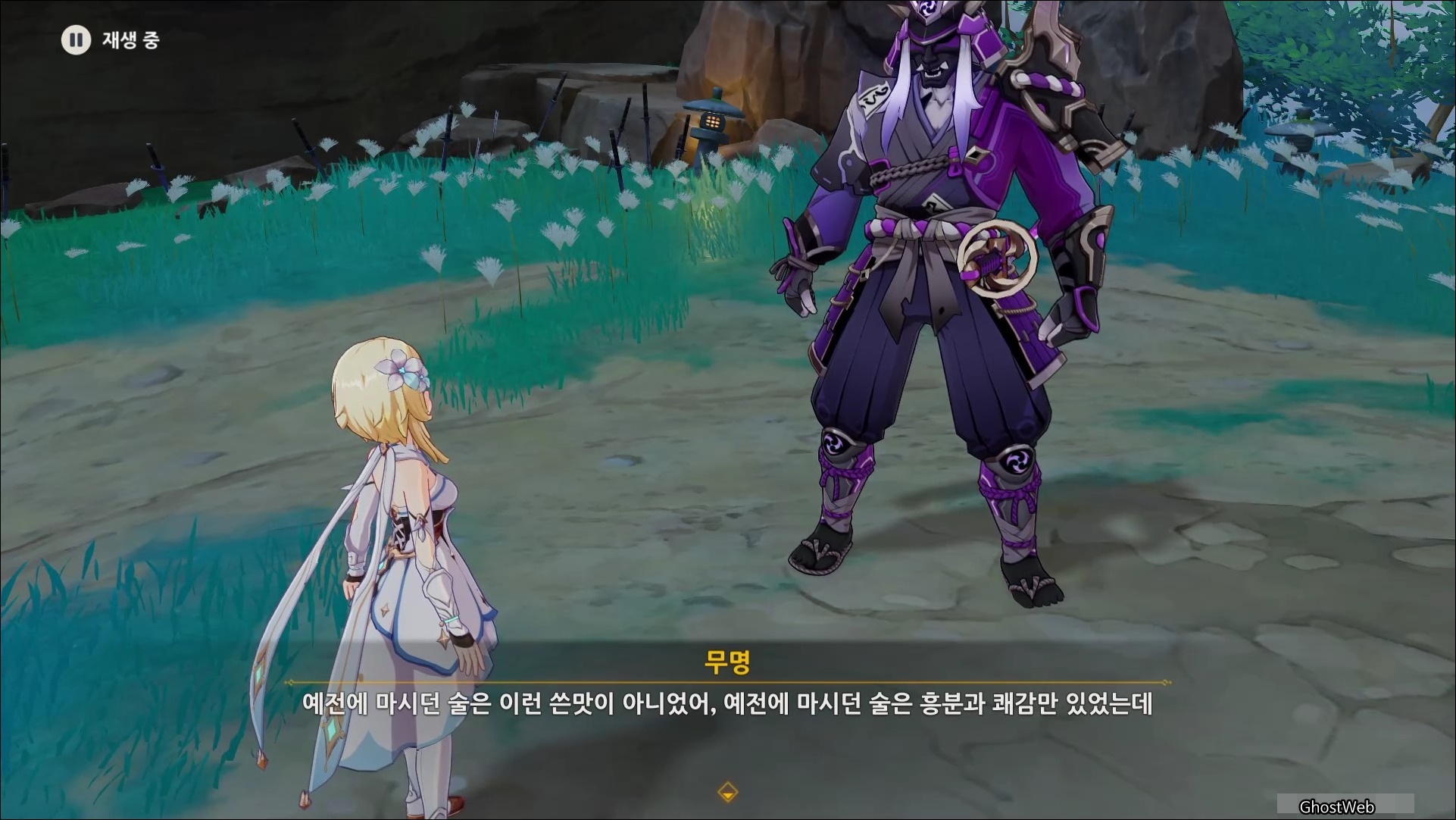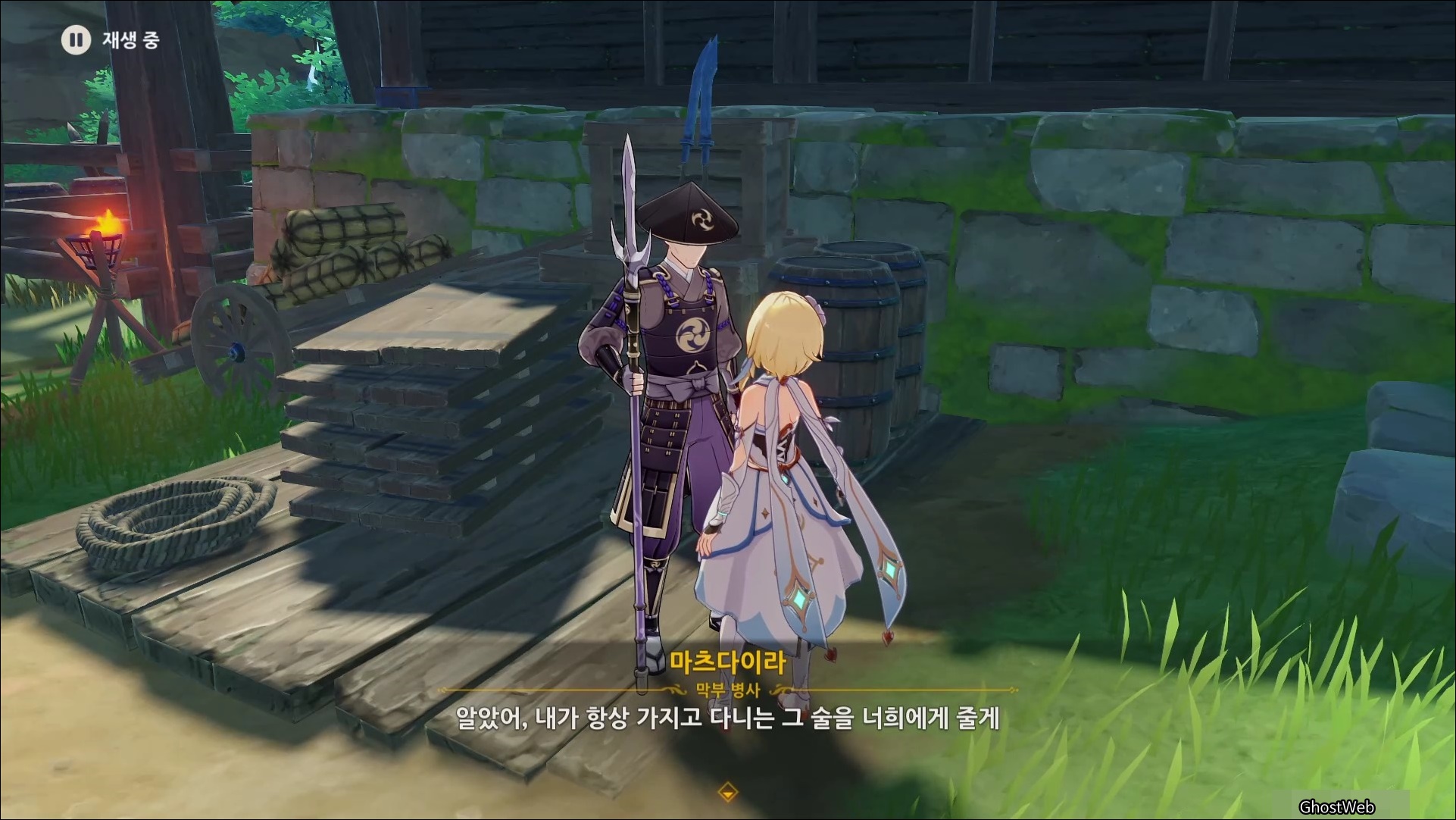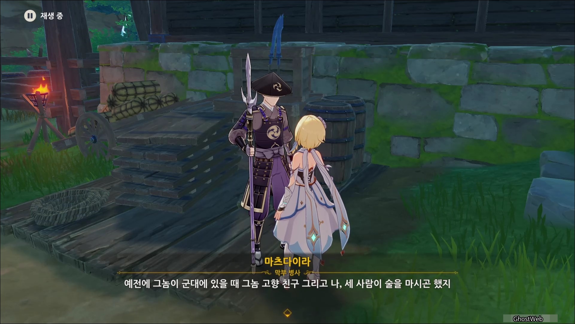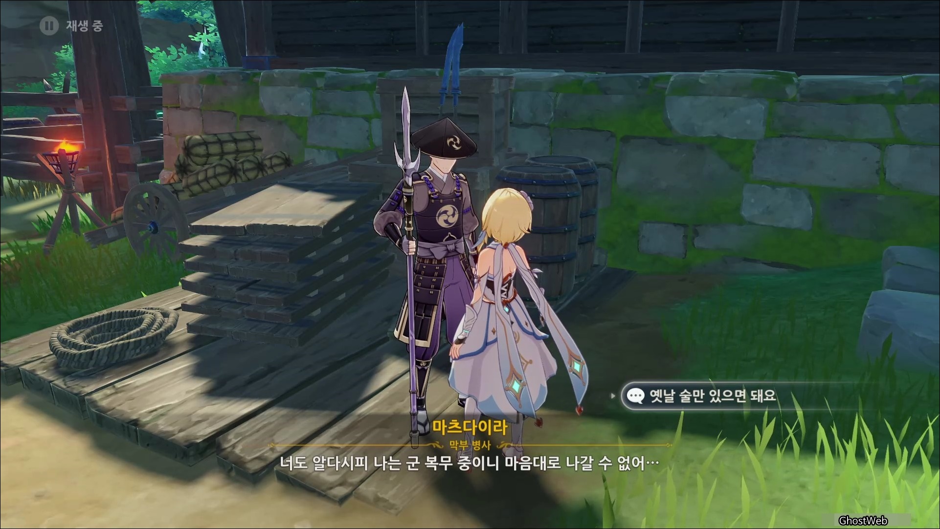 술을 마신 무명의 무사는 술이 쓰다고 하며 본인의 이름이 마사노리 였다는 것을 떠올리며, 다시 기억을 떠올리기 위해 여행자와 대결을 신청해요. (그만해...)