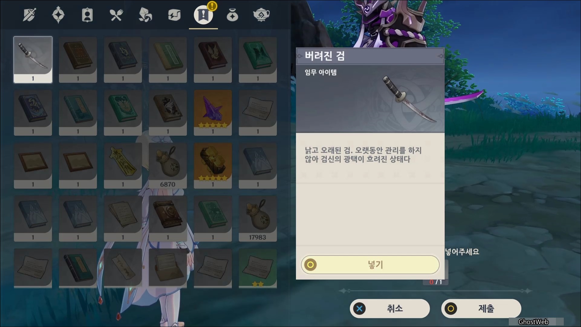 <나즈치 해안>의 워프 포인트로 이동하여 마사노리가 언급했던 지역으로가 검을 뽑으면 <주인 없는 검>과 <너덜너덜한 편지>를 얻을 수 있어요.