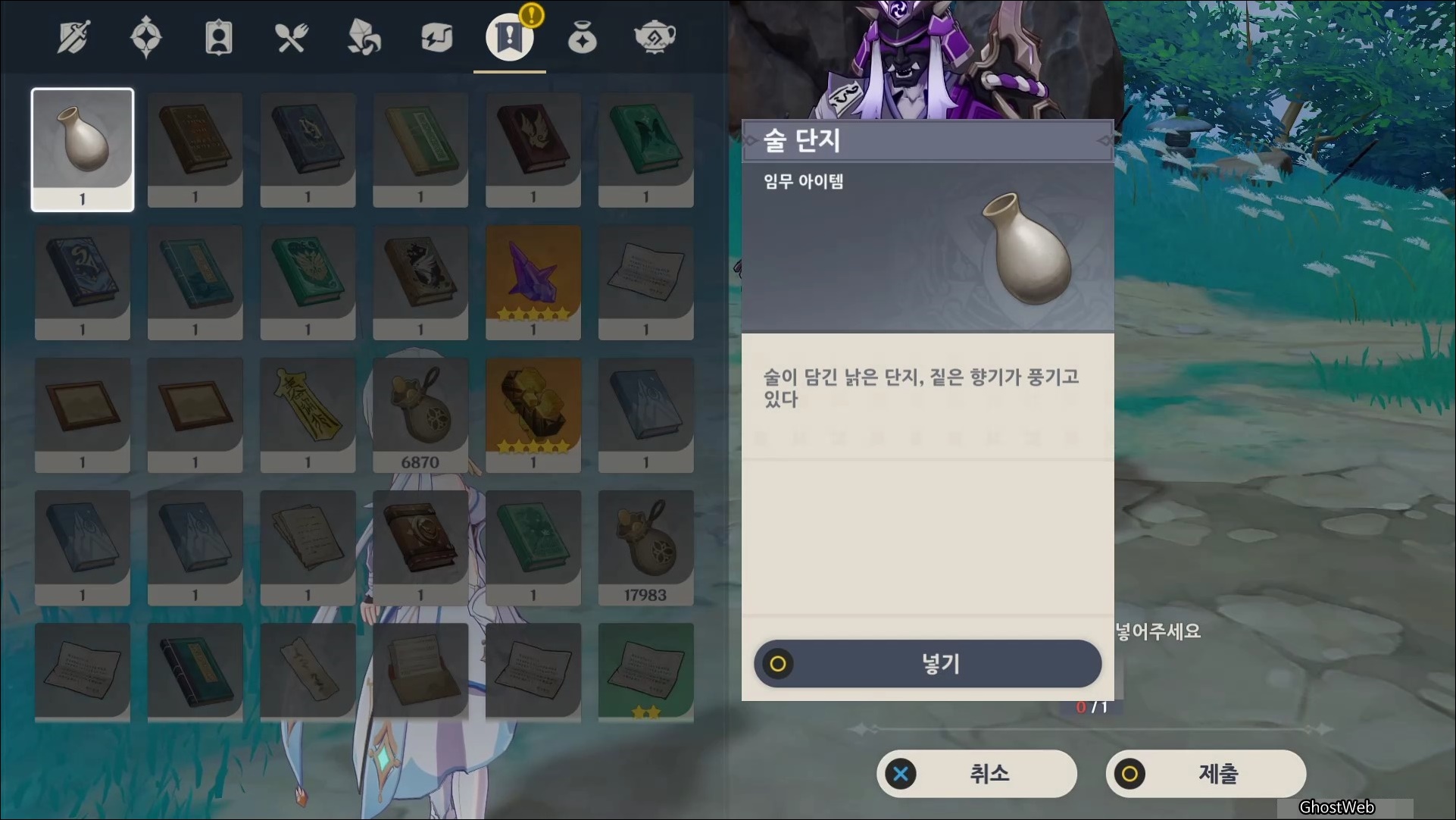 쿠죠 병영 한편에 있는 <마츠다이라>와 대화를 통해 이름 없는 무사에 대한 정보를 얻을 수 있으며, 그에게 <술 단지>를 받고 무명의 무사에게 전달하세요.