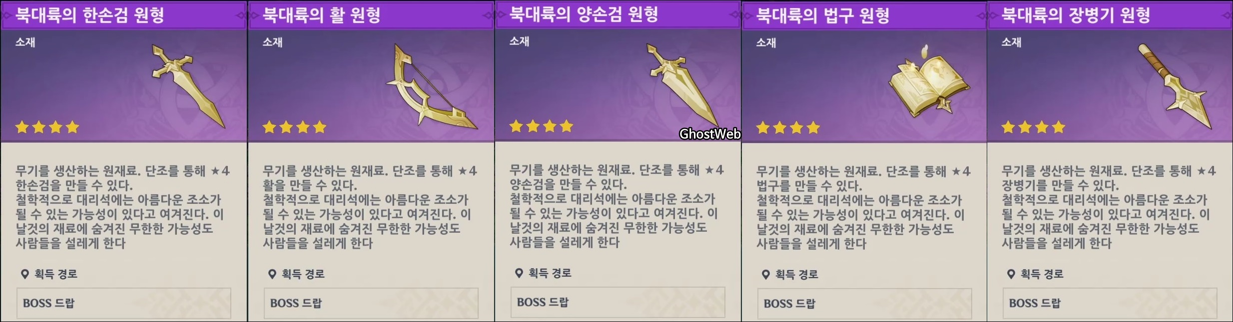 - 북대륙의 한손검 원형/활 원형/양손검 원형/법구 원형/장병기 원형