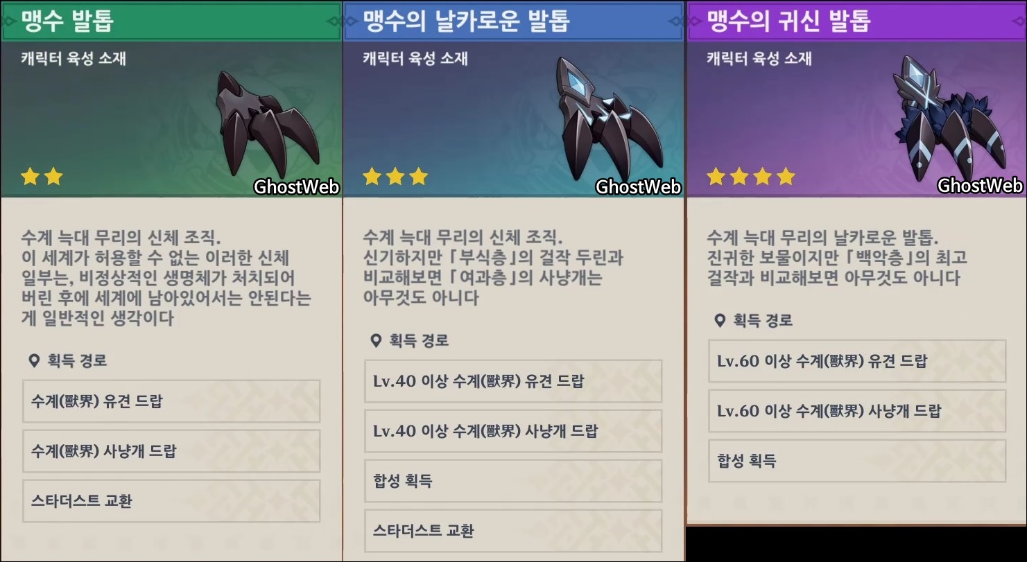 1. 캐릭터 육성 소재