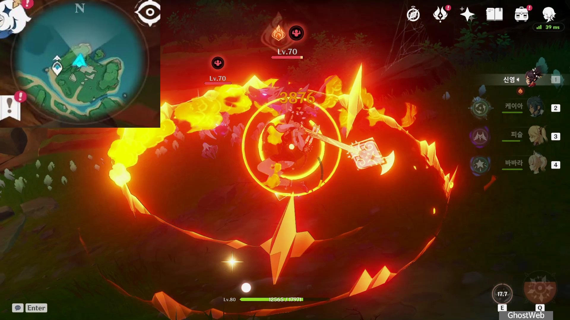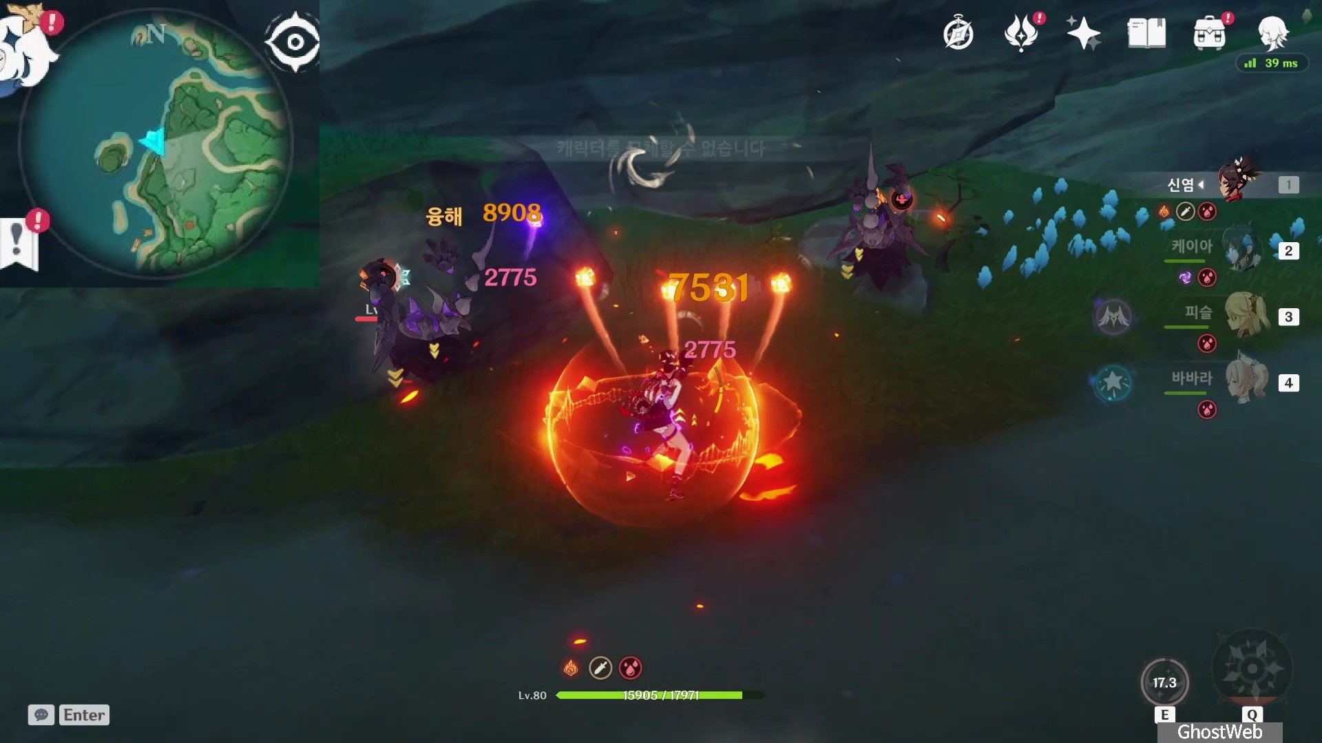 공격이 필드 위 캐릭터에 명중하면 파티 내 모든 캐릭터의 피해를 주는 공격을 하기 때문에 빠르게 처치하는 것을 추천드려요.