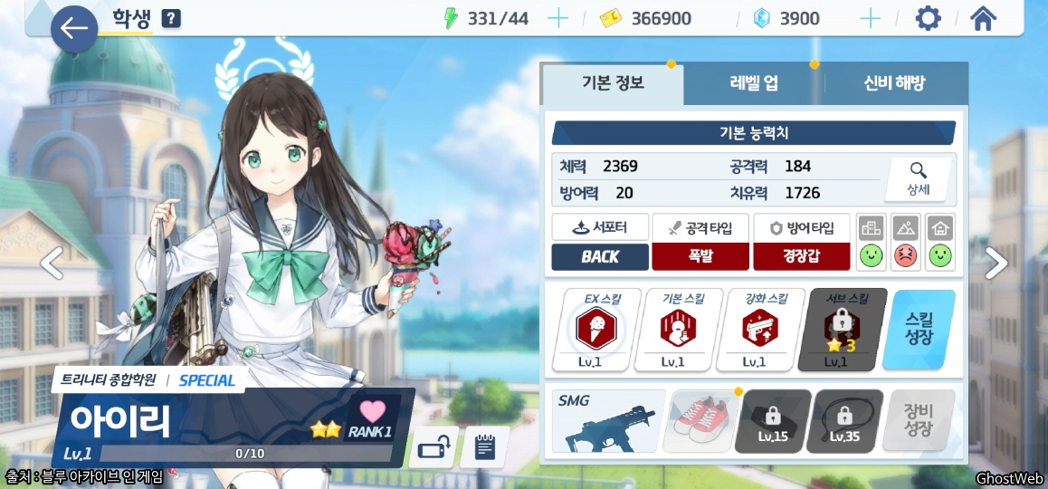 | 등급 / 무기 / 타입 | 2성 / SMG / 서포터 - BACK |