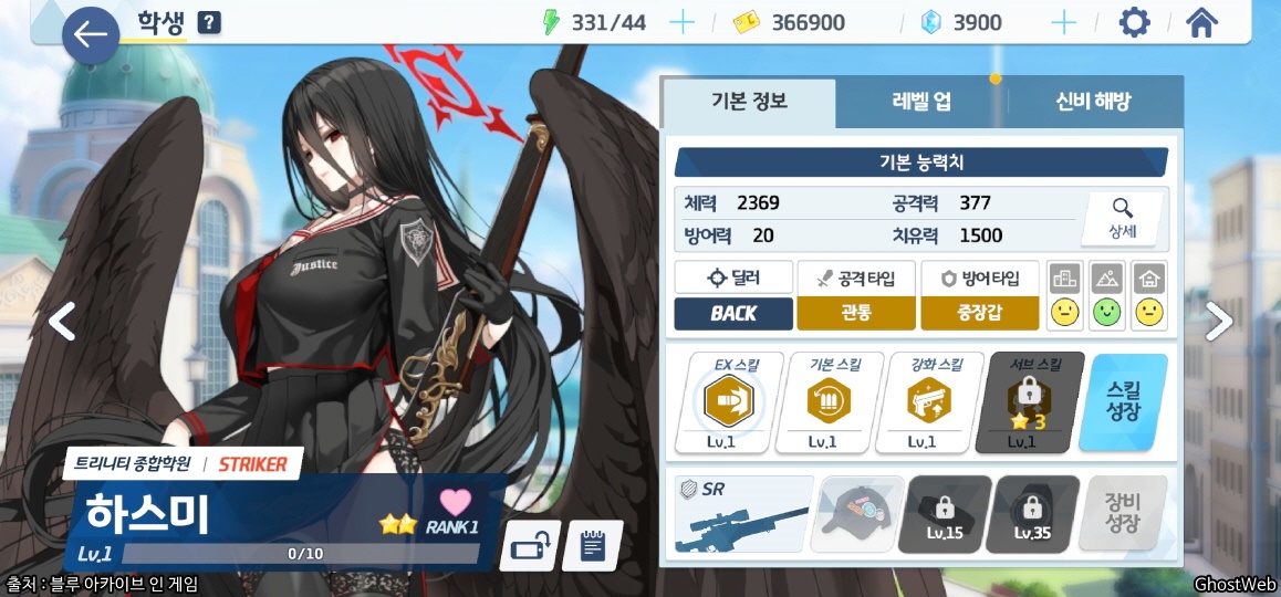 | 등급 / 무기 / 타입 | 2성 / SR / 딜러 - BACK |