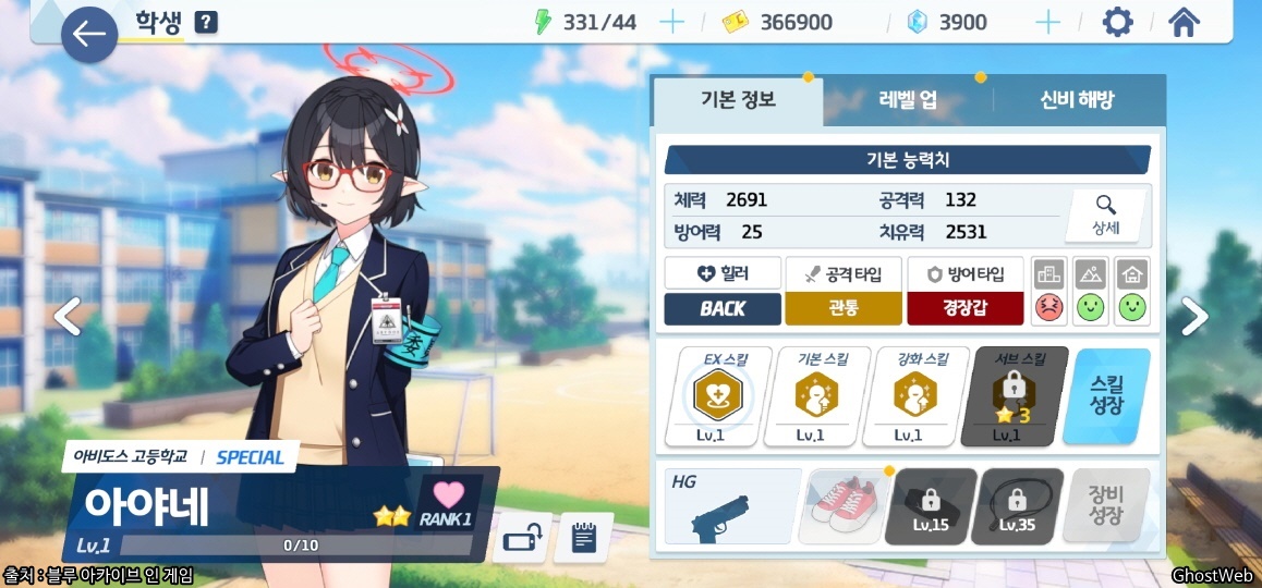 | 등급 / 무기 / 타입 | 2성 / HG / 힐러 - BACK |