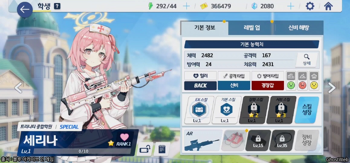 | 등급 / 무기 / 타입 | 1성 / AR / 힐러 - BACK |