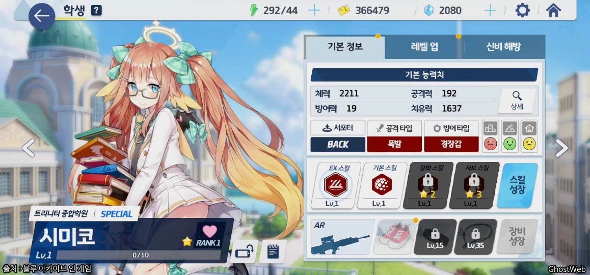 | 등급 / 무기 / 타입 | 1성 / AR / 서포터 - BACK |
