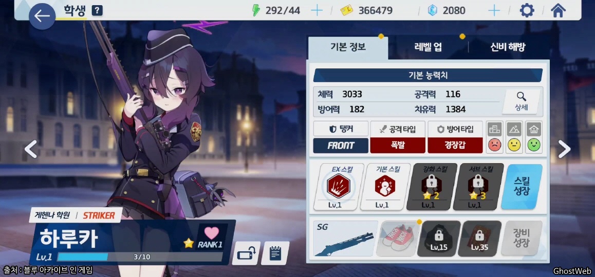 | 등급 / 무기 / 타입 | 1성 / SG / 탱커 - FRONT |