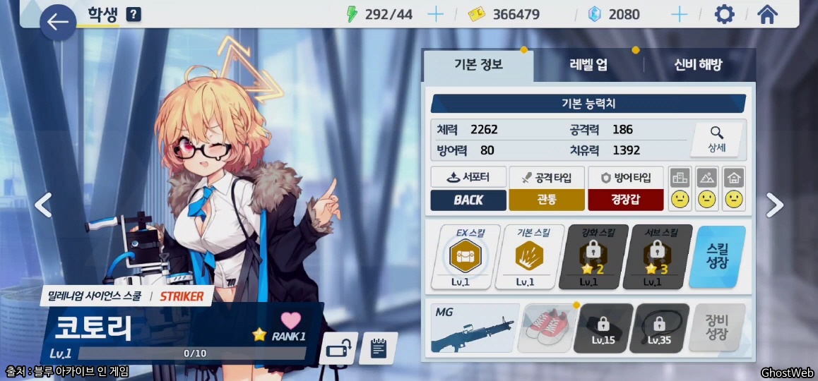| 등급 / 무기 / 타입 | 1성 / MG |