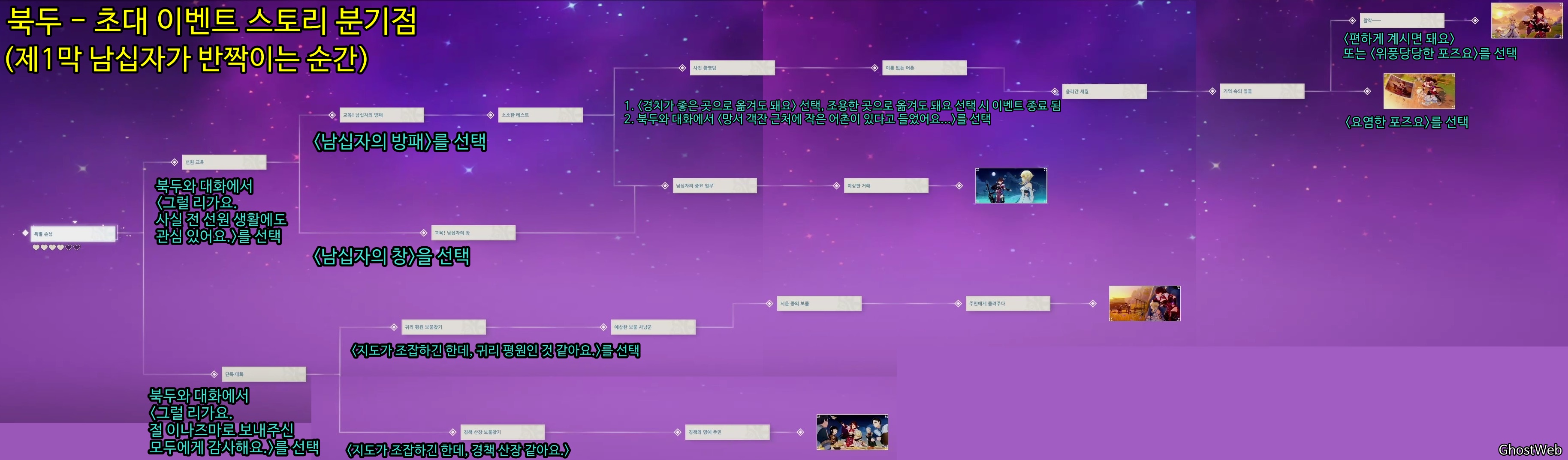 ※ 선택지 : 잘못된 선택지 선택 시 이벤트가 종료 되거나 엔딩으로 가지 않을 수 있는 지점