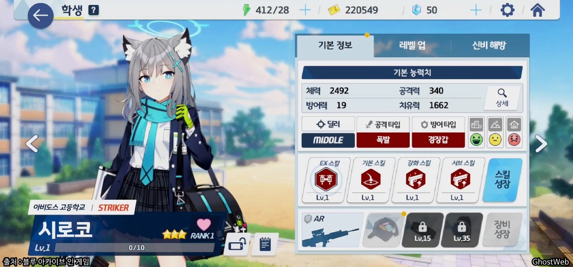 | 등급 / 무기 / 타입 / 전술 역할 | 3성 / AR / 딜러 / 스트라이커 |