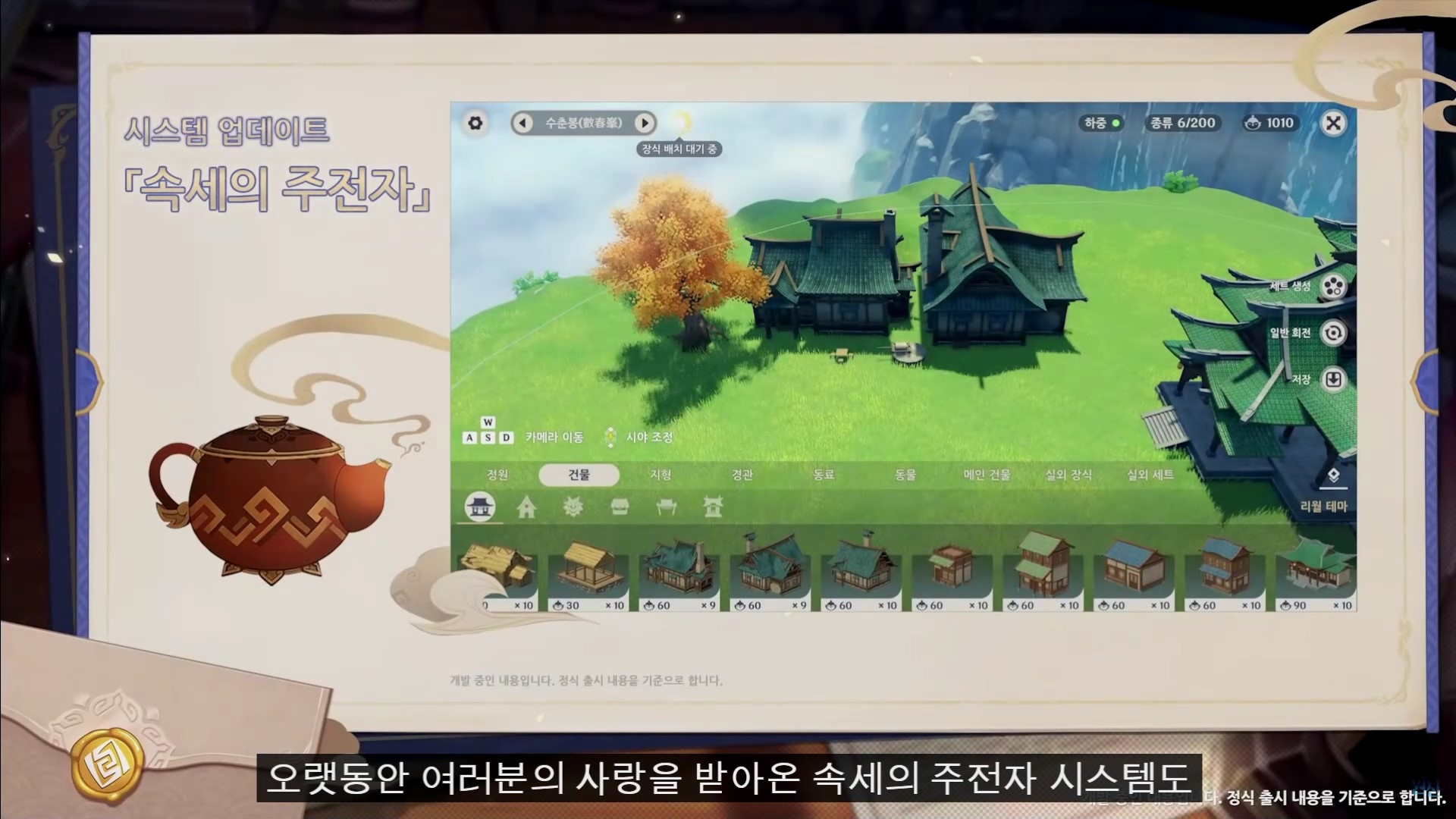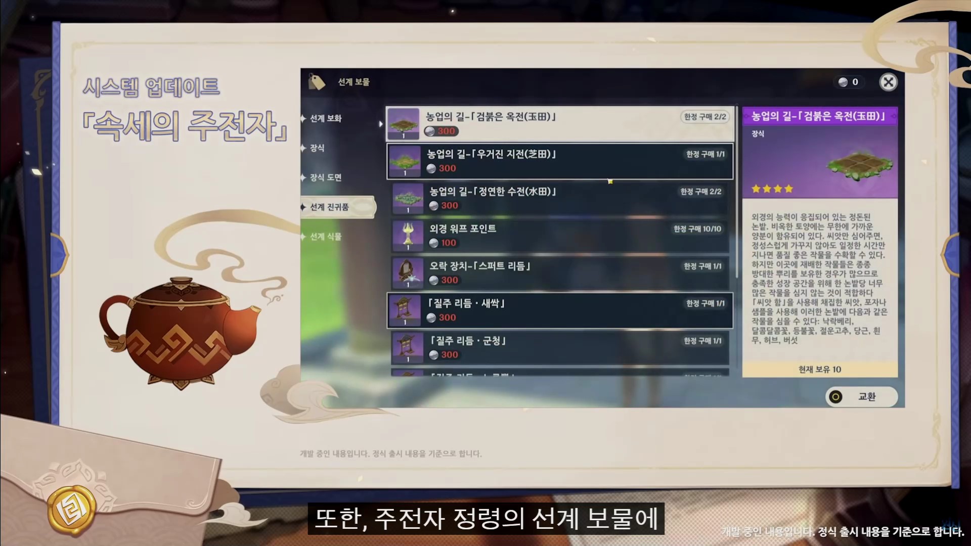 - 천상의 소리 장식 추가 (해금한 음악 재생, 주전자 BGM 변경 가능)