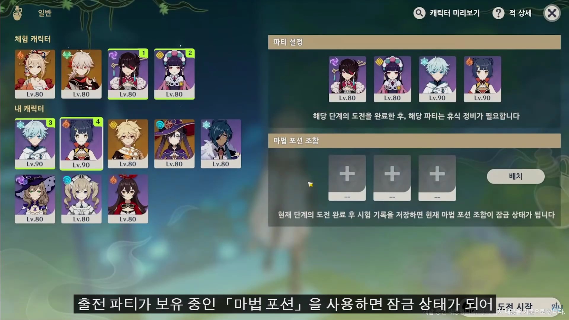 - 보상 : 원석, 캐릭터 경험 소재, 정제용 마법 광물, 모라, 무기 돌파 소재, 특성 육성 소재