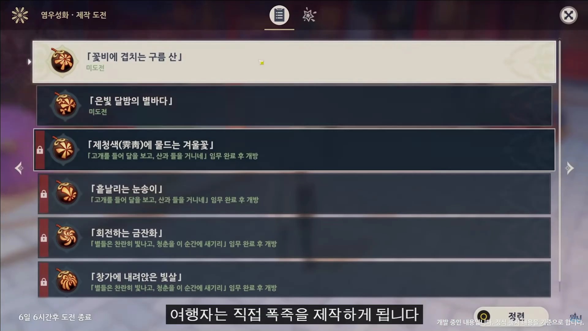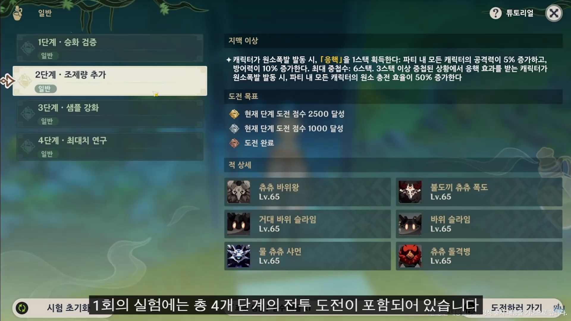 - 보상 : 원석, 캐릭터 경험 소재, 무기 돌파 소재, 모라, 특성 육성 소재