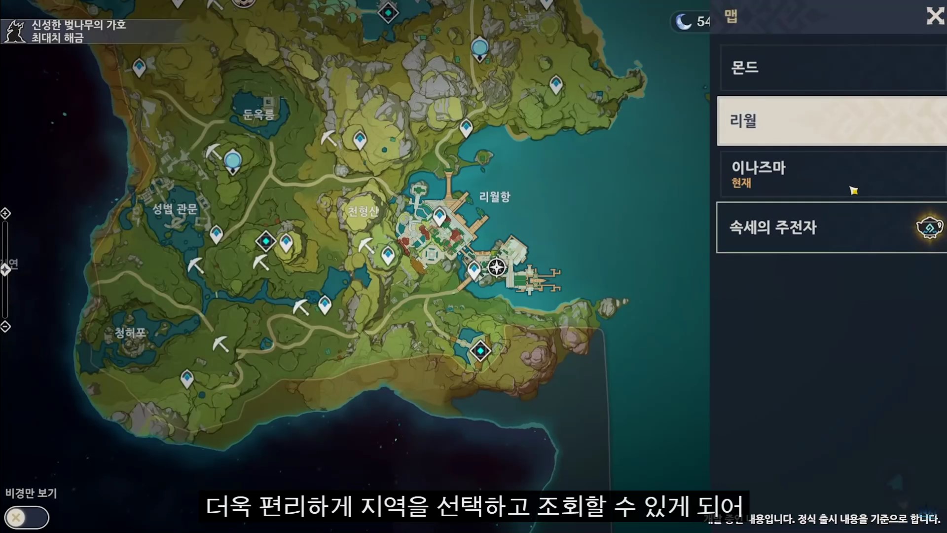 - 맵에서 지역 목록에서 해당 지역을 클릭하면 바로 해당 지역으로 맵이 이동하여 드래그 하지 않아도 됨
