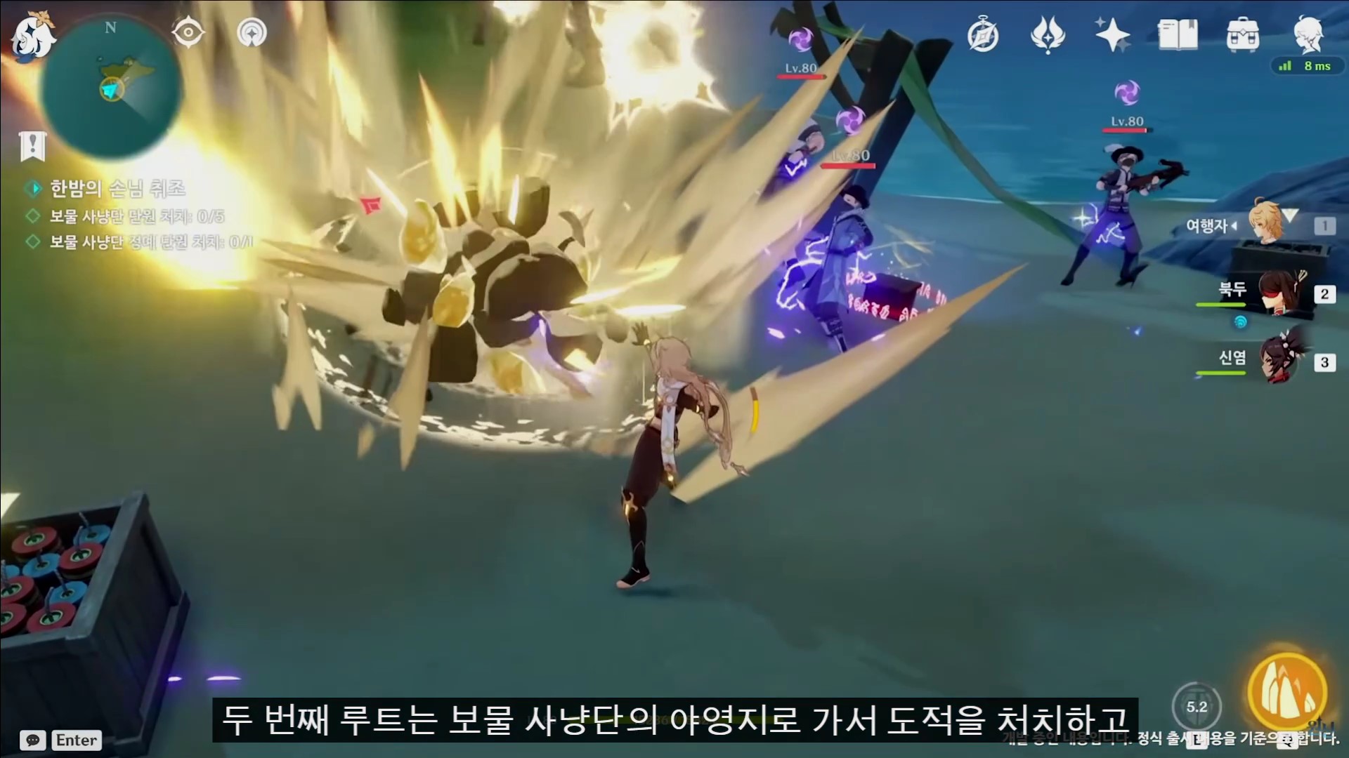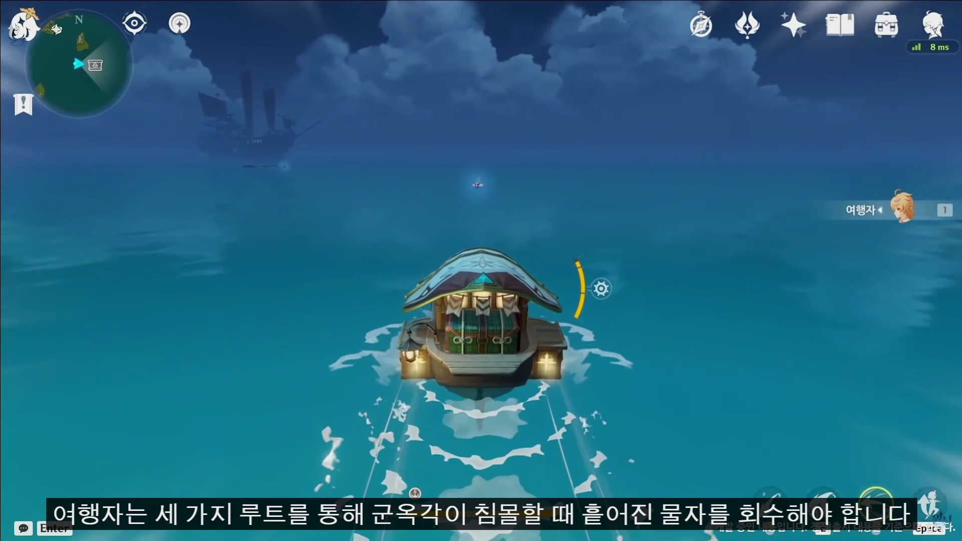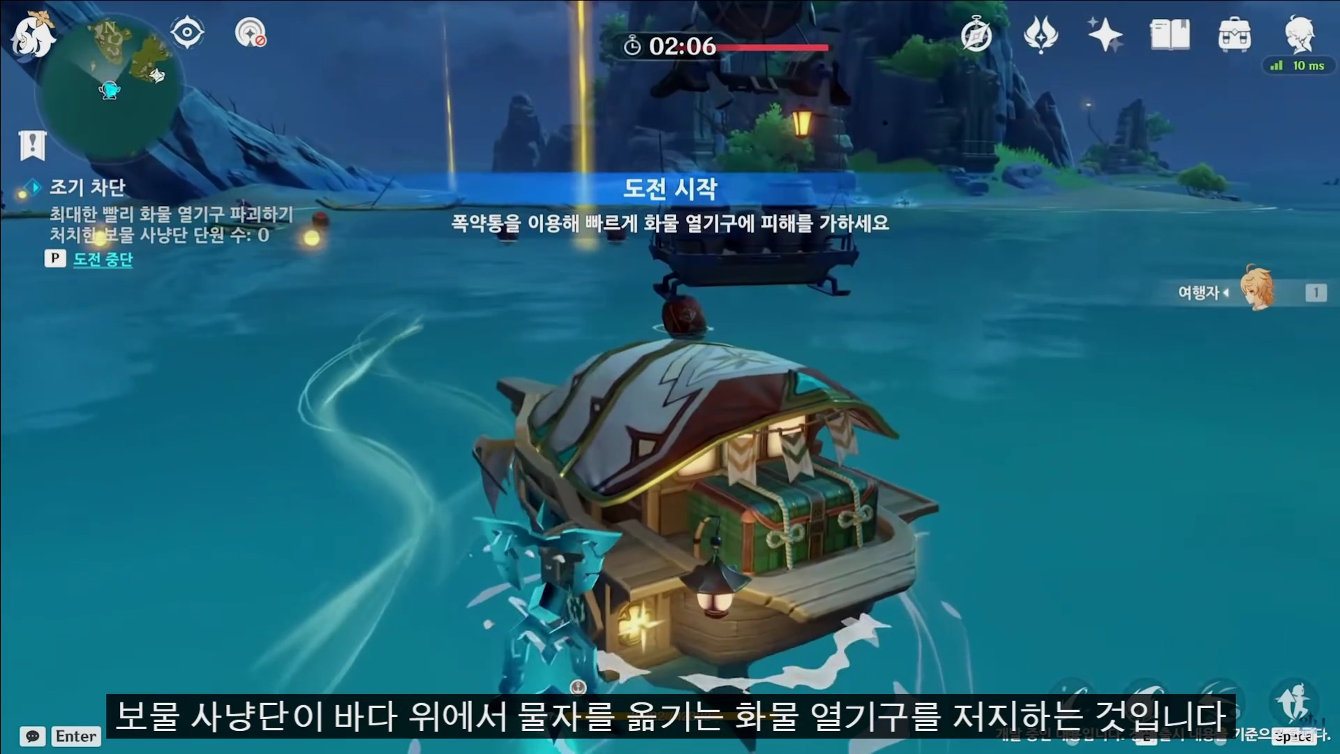 - 배를 타고 수집, 보물 사냥단 처치, 화물 열기구를 처치하여 물자 회수