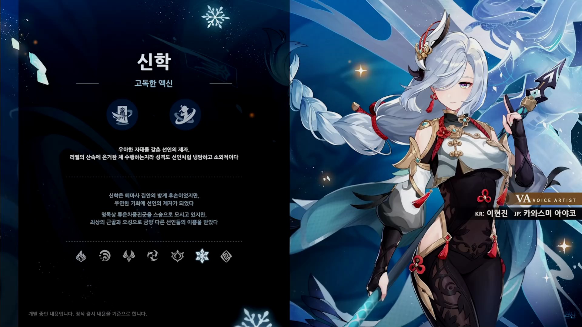 1. 신학 (5성, 얼음 원소, 장병기, 서포터형 캐릭터)