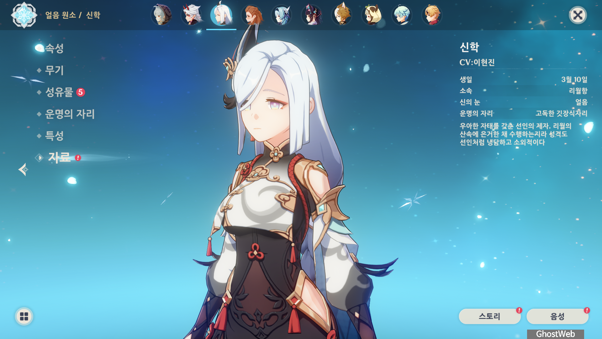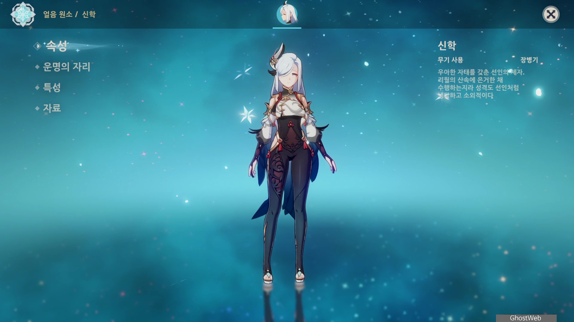 이번에는 리월의 얼음 원소 캐릭터인 신학에 대해서 정리해보도록 할게요.