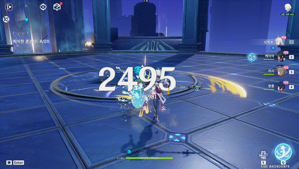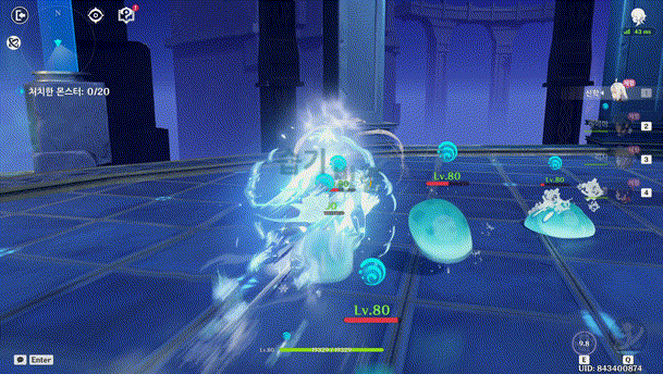 - 1회의 얼음 원소 피해를 동시에 다수의 적 명중 시, 명중한 적의 수에 따라 발동 횟수를 소모한다.